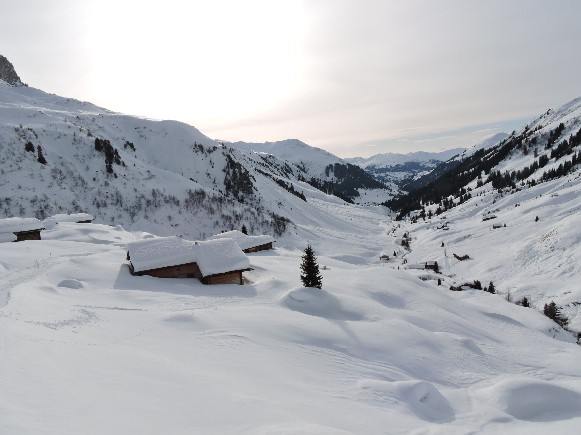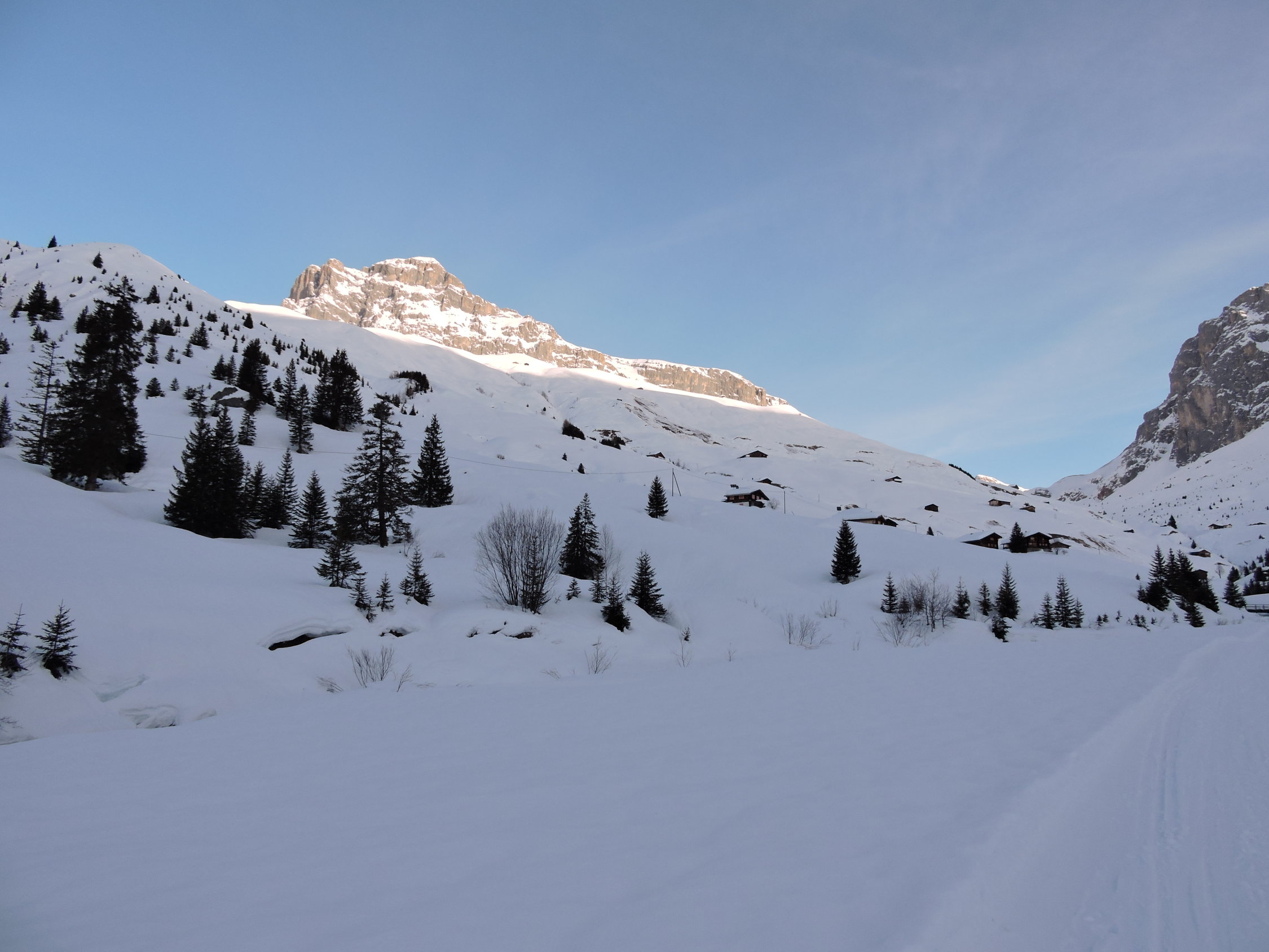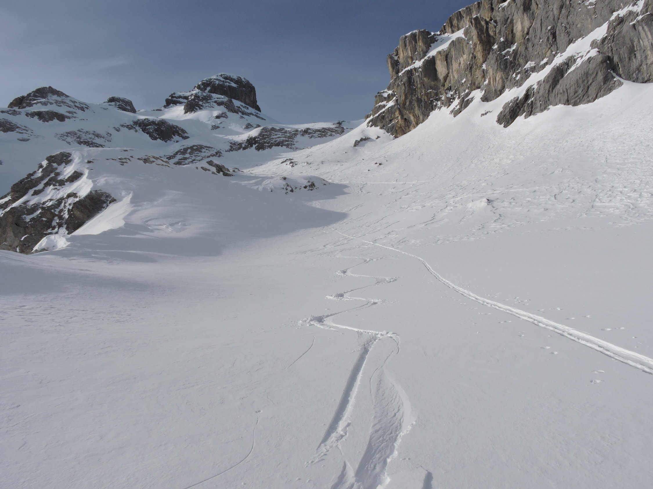 Genug Schnee im ganzen Tal. Unten 5 cm Pulver auf Hartschnee um so höher als man kommt Pulver verblasen mit Winddeckel,Zerstrugis,Pulver/Hartschnee bis wenige Blankestellen. Im Gemschtobel wehte ein starker Wind und auf dem Gipfel dann recht zügige Bise. Gut zum Aufsteigen, Abfahrt ging gut, mit Vorsicht eine gut Linie zu suchen (Verschiedene Schnee Arten). Ein weiterer Tourengänger auch noch am Gipfel.