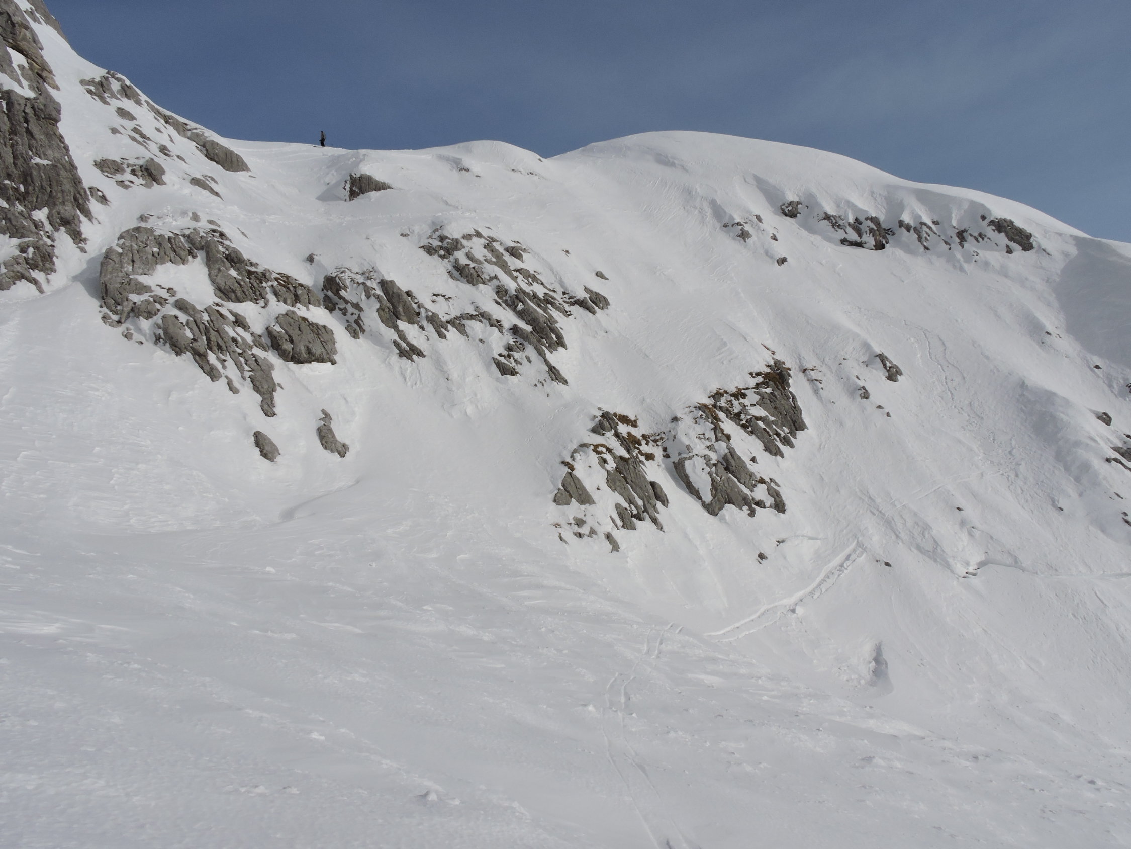 Schlüsselstelle genug Schnee Pickel/Steigeissen wären Hilfreich für Auf/Abstieg, kann auch rechts Abrutschen oder Abfahren