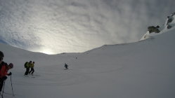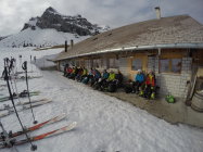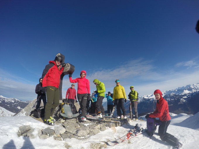 Ski bis Hinter Brossmatt getragen. Nur ganz wenige Stellen mit Schnee auf der Strasse. Ab da mit den Ski bis auf den Gipfel auf harter Unterlage.