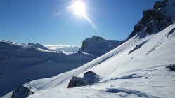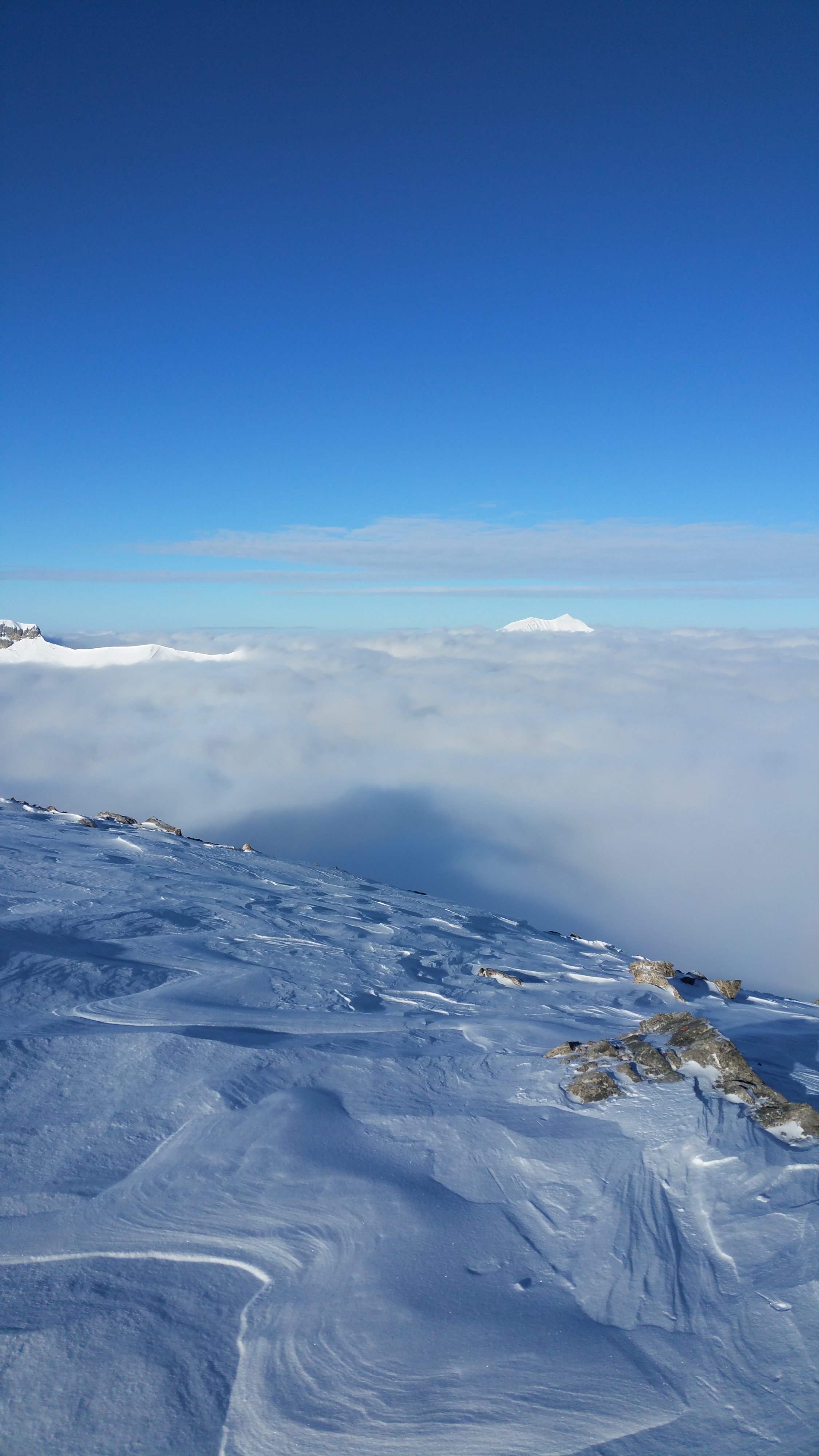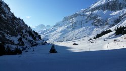 Adelboden noch im Nebel. Auf Engstligenalp ab Ende Tossenlift plein soleil. Auf 2500 ca. 10cm Neuschnee, oft verfrachtet und gepresst. Chindbettipass und Totz noch nicht gespurt. Habe Totz über SW-Grat erklettert - ohne Steigeisen oder Pickel ein wenig wacklig. Auf Gipfel gesehen, dass erste Tourengänger auch von SO her im Anmarsch. Abfahrt über Innerüschine. Zwei Mal für ca. 10min wieder aufgefellt. Bis unterhalb Schwarzgrätli herrlicher Pulver. Ab da oft Lawinenschnee. Riesige Lawinenkegel aus Loner-O-Flanke zwischen Inner und Üsser Üschine. Ab Üsser Üschine ruppige Abfahrt über beinhart gefrorenen Altschnee. Letzte 100hm ob Sunnbüel Talstation aper. Rund 10min Ski getragen.