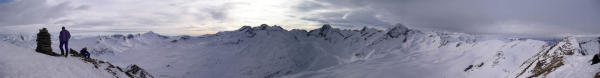 Unerwartet gute bis sehr gute Verhältnisse. Keine Steine, keine Löcher und keine Stauden aber sehr zerfahren. Schneebeschaffenheit in unterer Region leicht Bruchharsch, sonst windgepresster Pulver oder herrliche Pulverschneehänge etwas abseits und natürlich auch pistenähnliche Hänge. Im allgemeinen prima zu fahren.