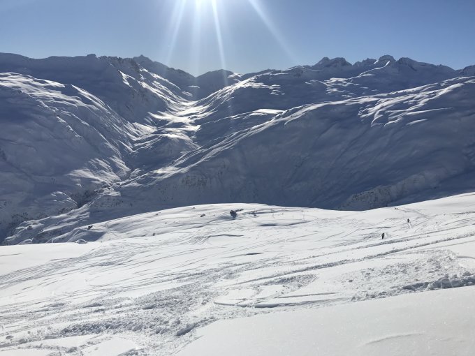 Perfekte Bedingungen. Powder vom Gipfel bis Realp. Morgens gewohnt frisch ab Start 8 Uhr (ca. -9 Grad). Oftmals doppelt gespurt.