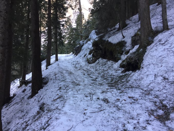 Unterer Teil mühsamer (auch wegen den vom vergangenen Sturm herunter gewindete Äste und Nadeln), aber noch erträglich zum fahren.
