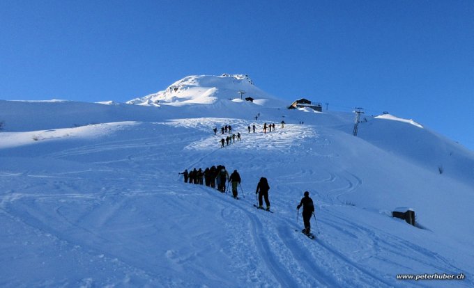 Es hatte sehr viel Leute unterwegs. Im Startblock 8:45 Uhr sind rund 50 Tourengänger losgerannt... Auch unterwegs wars ein Gerangel. Na ja, kein Wunder, dass auch andere auf die selbe Idee gekommen sind. Dafür auf der Abfahrt ruhig und einsam.