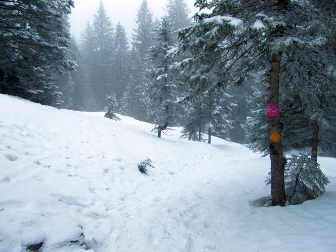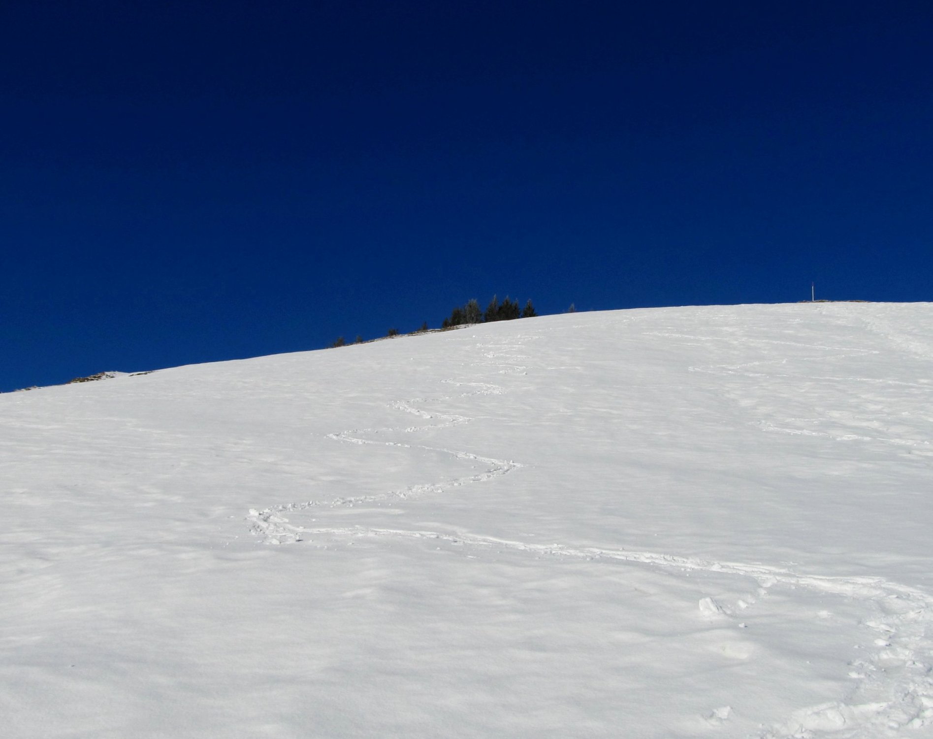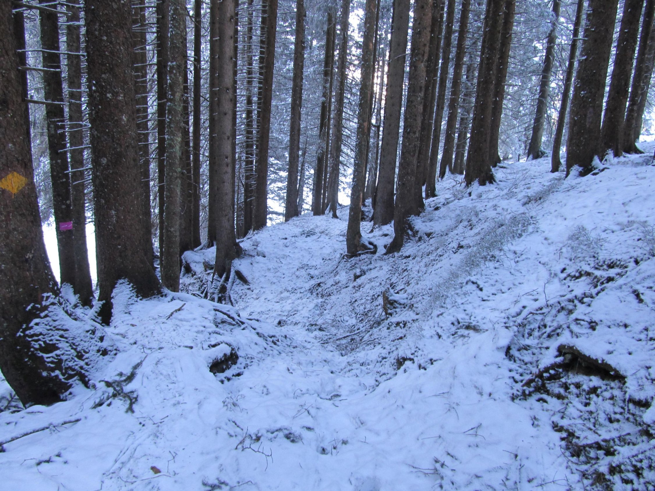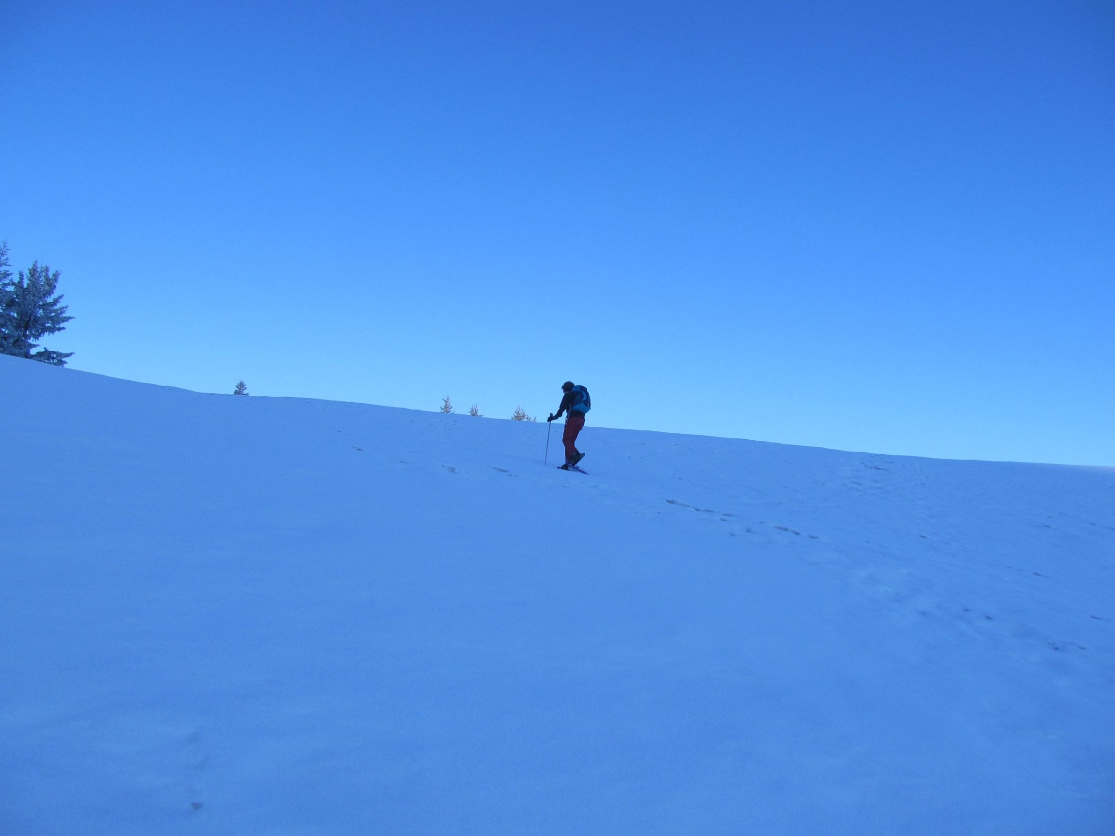 Ca. 2 cm Neuschnee vom Freitag lag auf einer tragenden Schneedecke. Beim Aufstieg Richtung Chammhaldenhütte war teilweise keine Grundlage mehr vorhanden, auch zum Teil beim Aufstieg bis zum Kronberg.