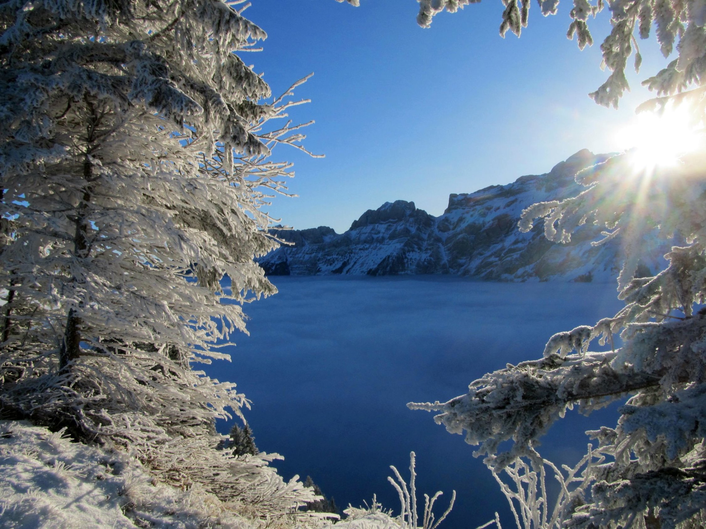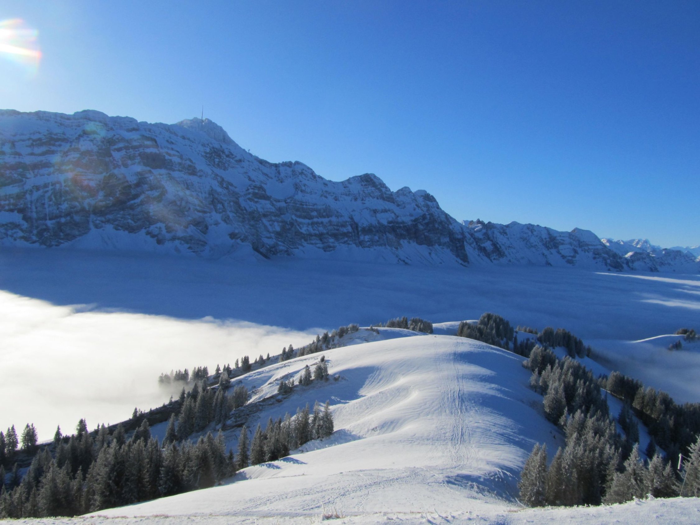Eisige Kälte im Kaltluftsee auf der Schwägalp. An den Südhängen des Kronbergs "grünte" es bereits wieder.