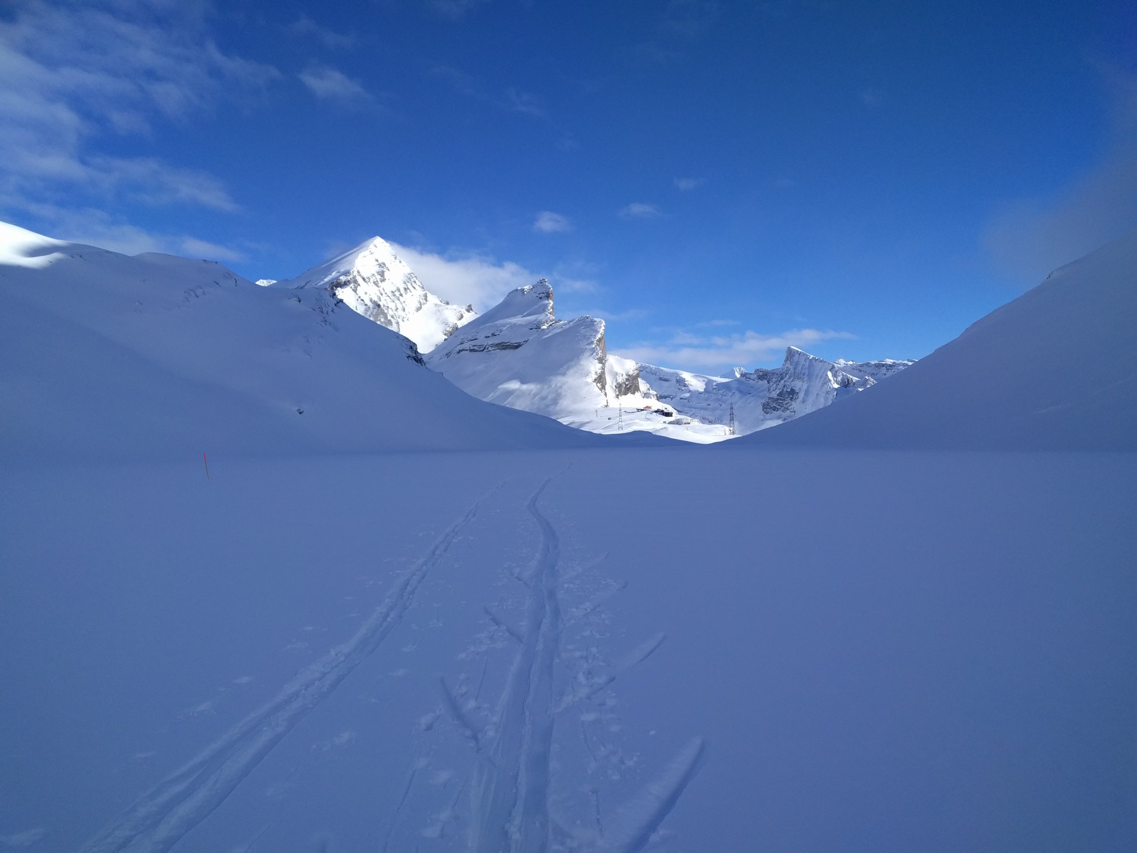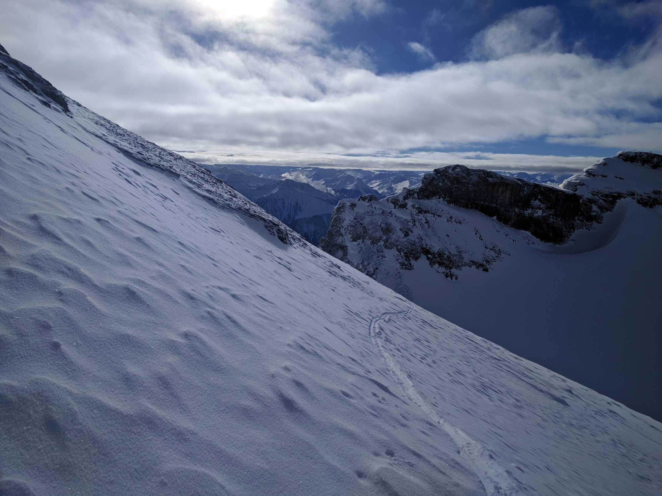 Wollte eigentlich aufs Steghorn, aber alleine, ohne Spur bei erheblicher Lawinengefahr war's mir zu heikel. Die Abfahrt vom Daubenhorn hat für alles entschädigt.