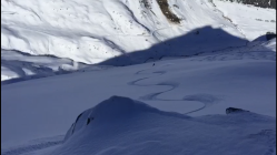 In der Abfahrt Couloir recht zerfahren und schwerer Schnee. Unterhalb in der NW-Flanke dann sehr viel Platz für eigene Spuren. Perfekter Pulver.