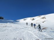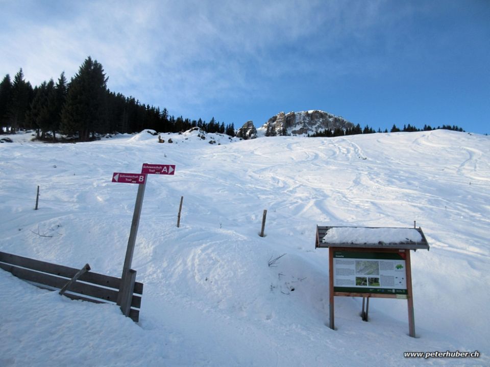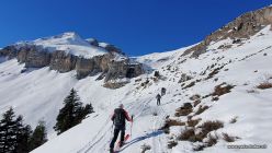 Es hat genug Schnee auf der ganzen Route. Schon gleich ab dem Start um 9 Uhr waren wir in der Sonne. Bei der Querung bei Steinböden sind einige Meter auf Gras zu überqueren. Die Aufstiegsspur(en) sind meist von Schneeschuhgängern geprägt.