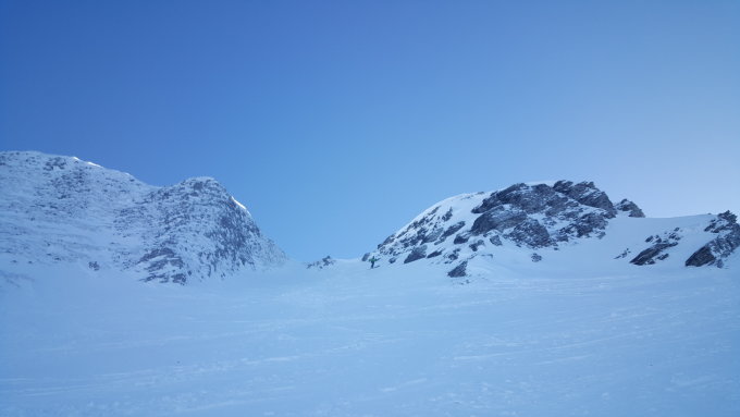 Abfahrt/Abstieg: oben war der Schnee so hart, dass wir bis unter das Couloir wieder abgestiegen sind. Nichts für Anfänger. Dann Abfahrt ganz OK, aber wieder hart, hart, hart.