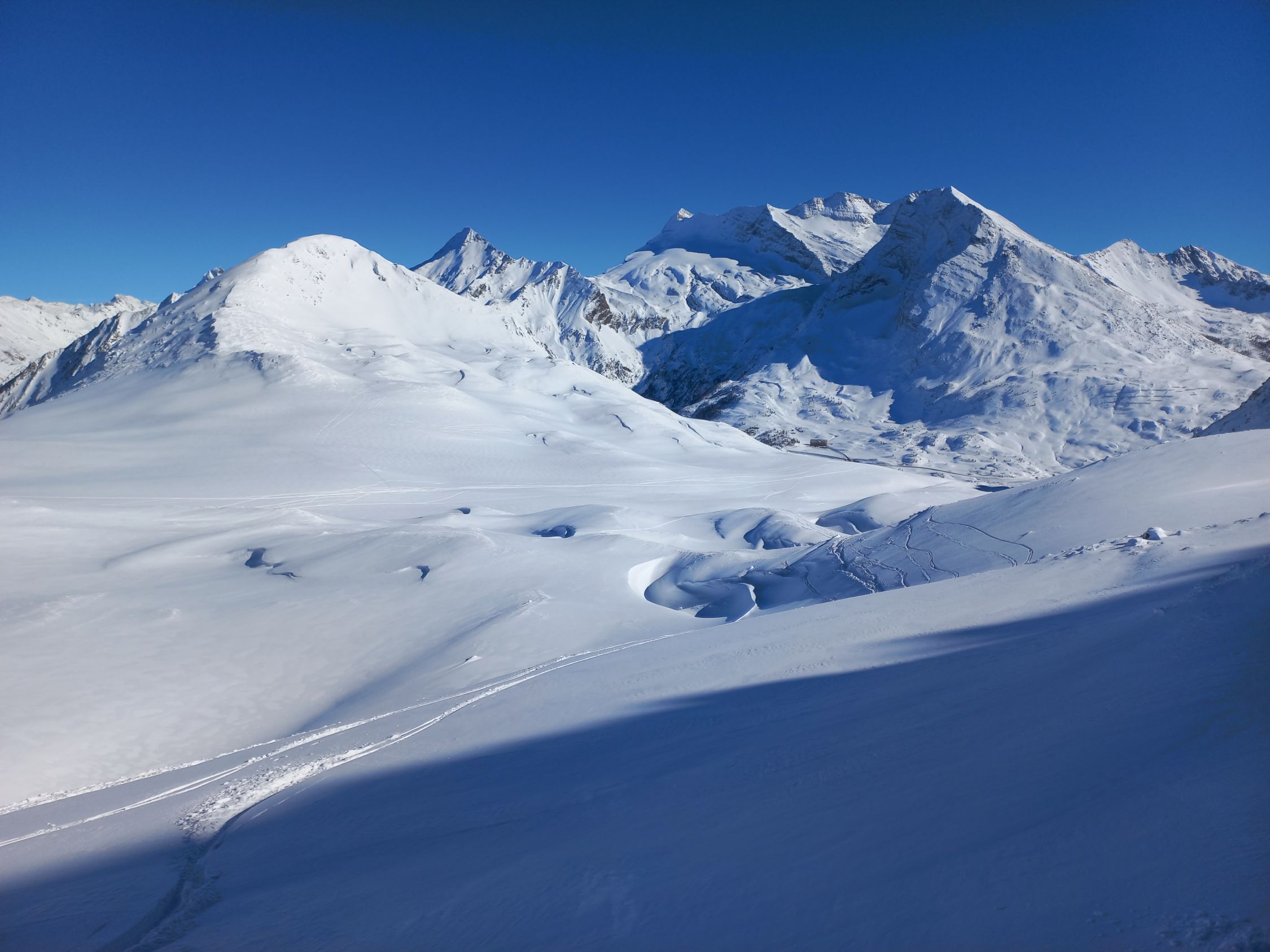 Der in den vergangenen Tagen am Simplonpass gefallene Schnee ist schön zu spuren und zu fahren. Die relativ dünne Schneedecke trägt relativ gut und man sinkt nicht tief in den Neuschnee ein. Die Hänge östlich von der Nanzlicke sind allgemein etwas besser eingeschneit als die auf der Westseite oder auf den Graten, wo viele Steine unter der Schneedecke lauern. Die Abfahrt von der Üsseri Nanzlicke bis Lingwurm ist lohnend, man muss allerdings in den eingeblasenen Mulden bleiben, um Steinkontakt zu vermeiden.