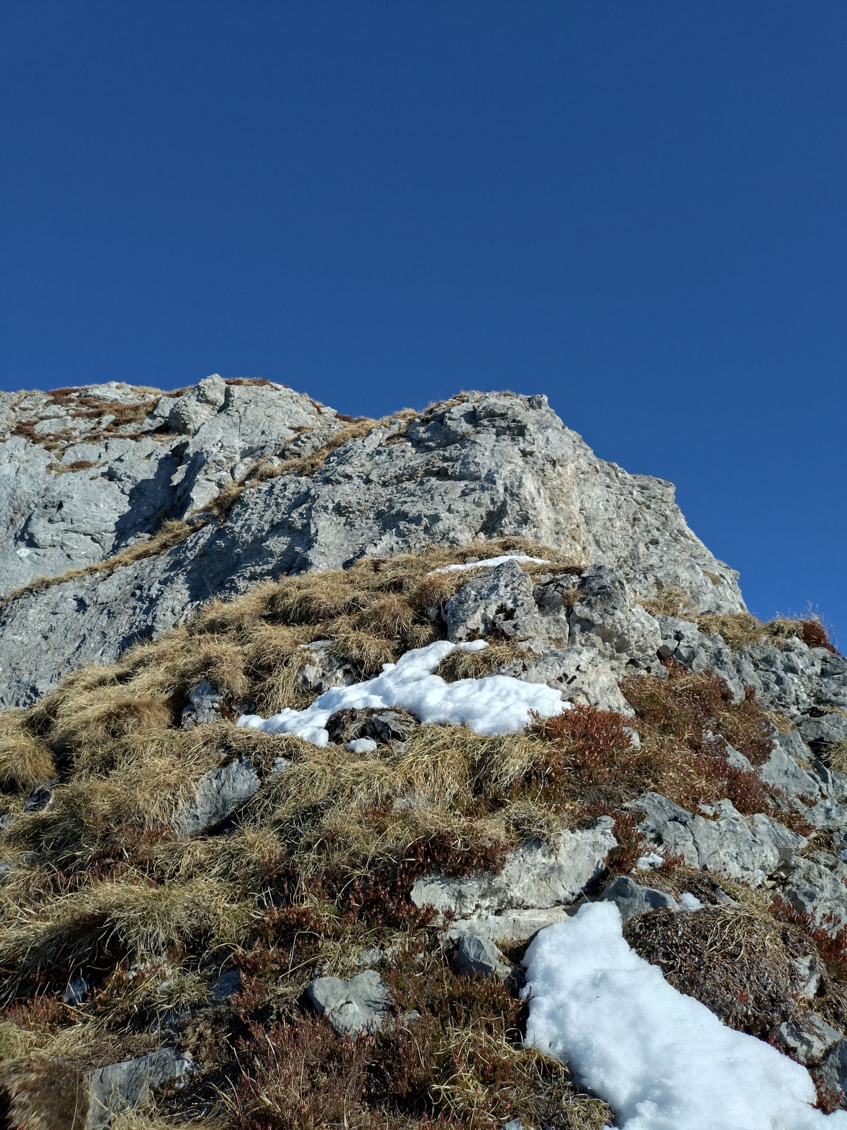 Ab Alp Rotenbalm westwärts den Hang ansteigen bis in den Sattel oberhalb des Firtiggrätlis. Weiter in nördliche Richtung bis an den Fuss des Gipfelaufschwungs. Skidepot. Zuerst einige Meter über Gras oder Schnee bis zur ca. 5 m hohen Felswand, welche den Weiterweg versperrt aufsteigen. Entgegen anderer Bericht muss diese Wand (III) nicht direkt erklettert werden. Man kann auf einem Band ca. 10 m in östliche Richtung traversieren bis man über einen Einschnitt wieder zurück auf den Grat gelangt (leichte Kletterei, I) und so oberhalb der 5 m Stufe steht. Nun über Schnee oder grasig-felsige Stufen einfach aber steil in wenigen Metern zum Gipfel.