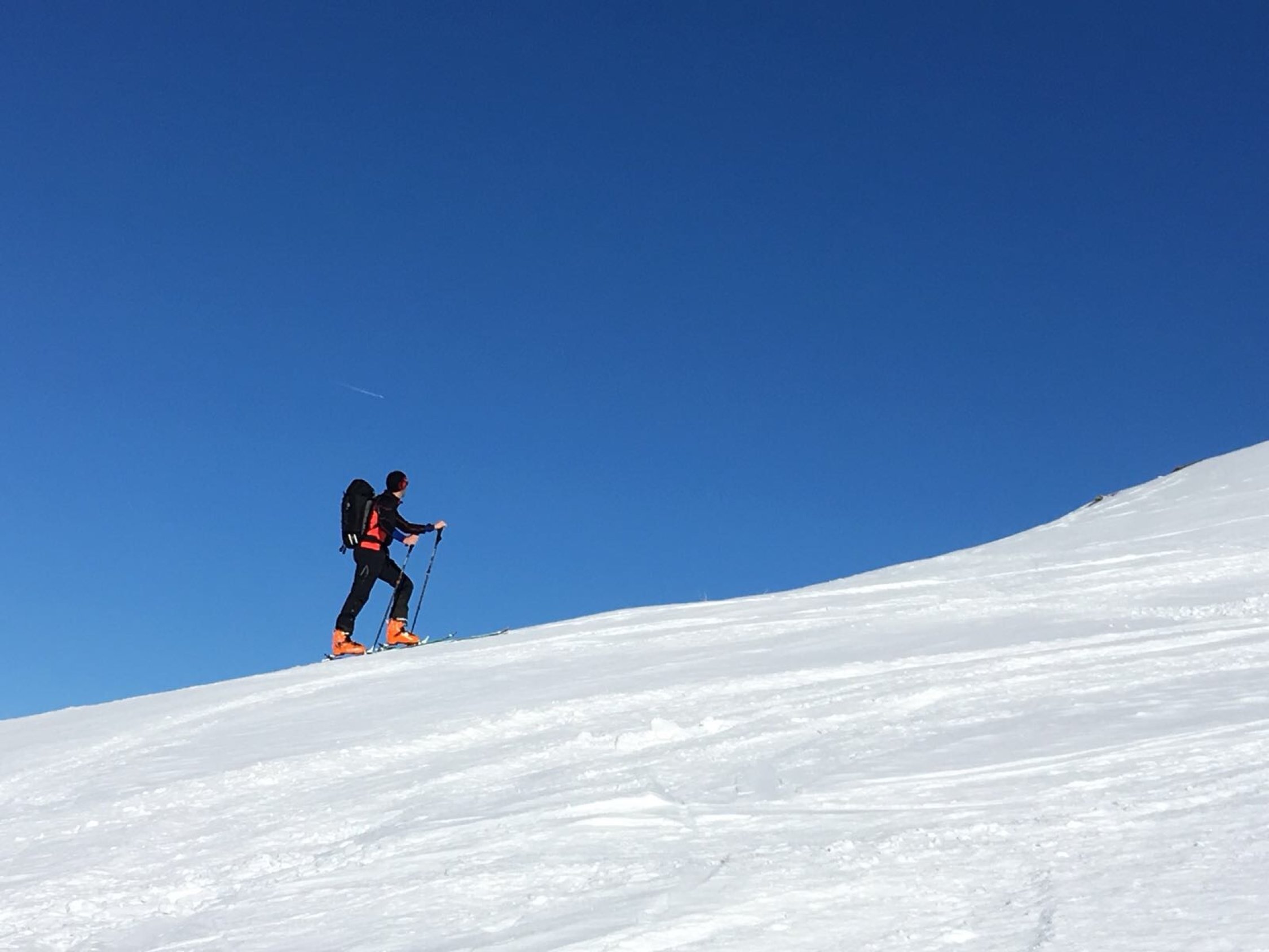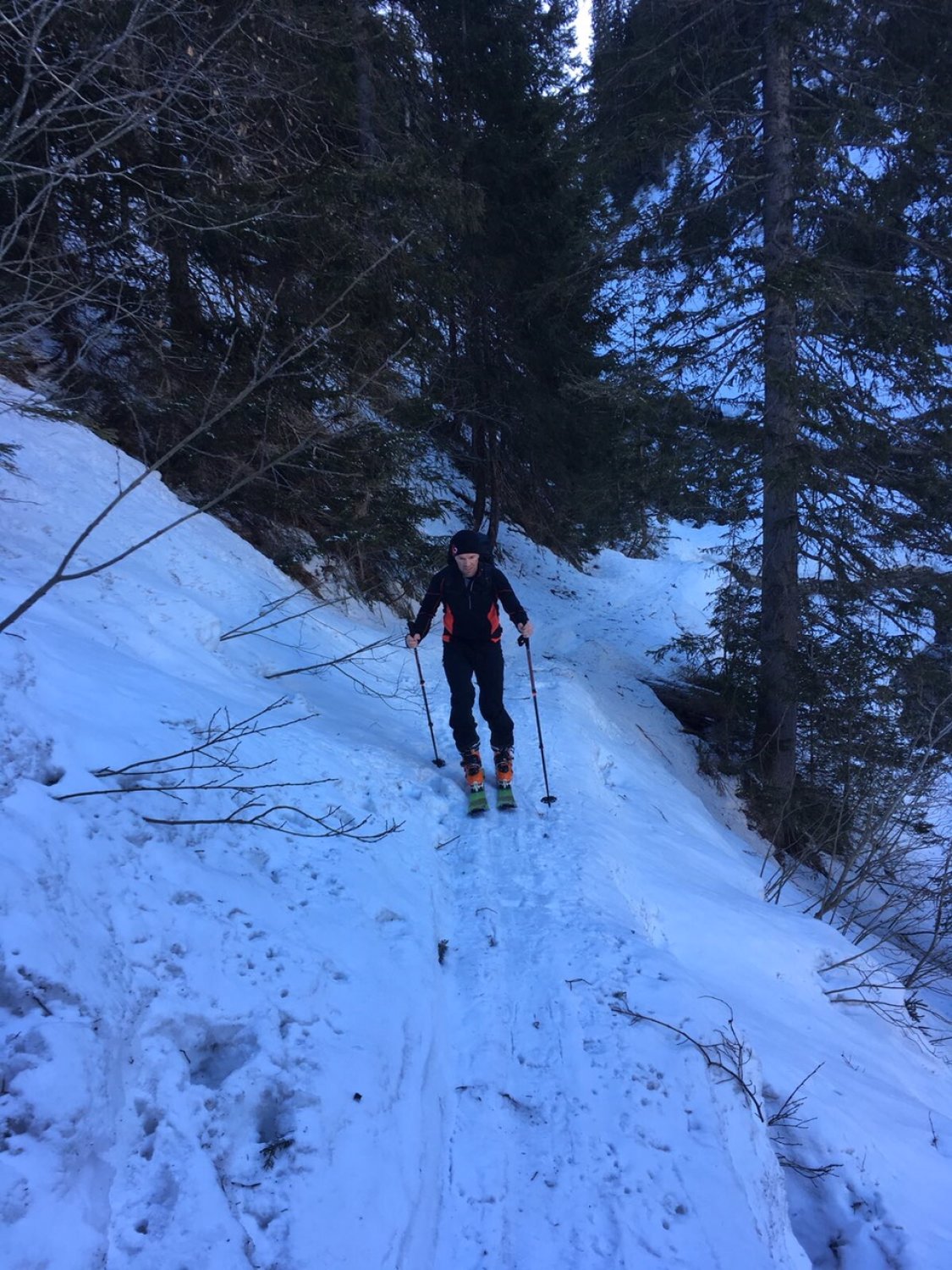 Aktuell noch gut, aber mit den angekündigten Schneefällen steigt das Lawinenrisiko sicherlich, dafür wird danach die Tour wieder herrlich sein.