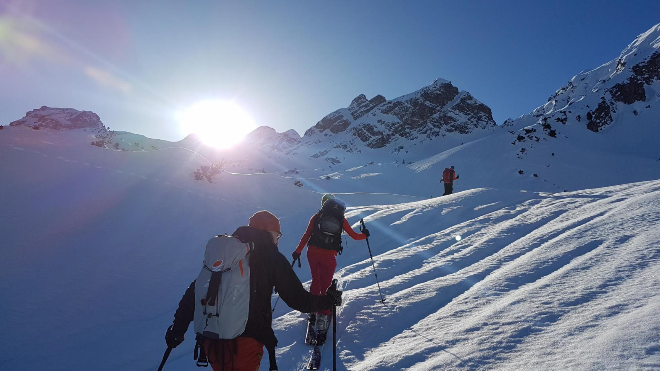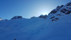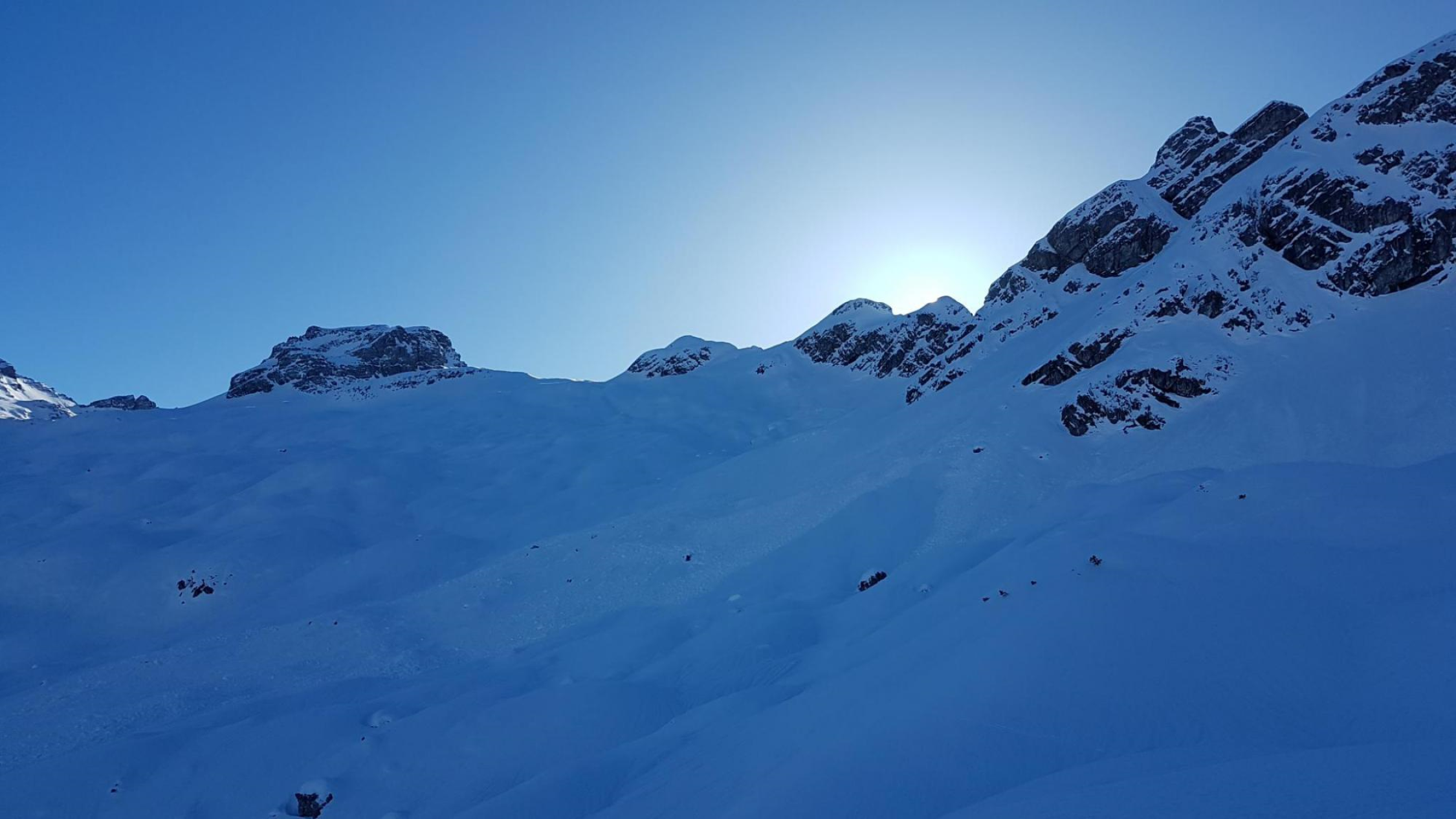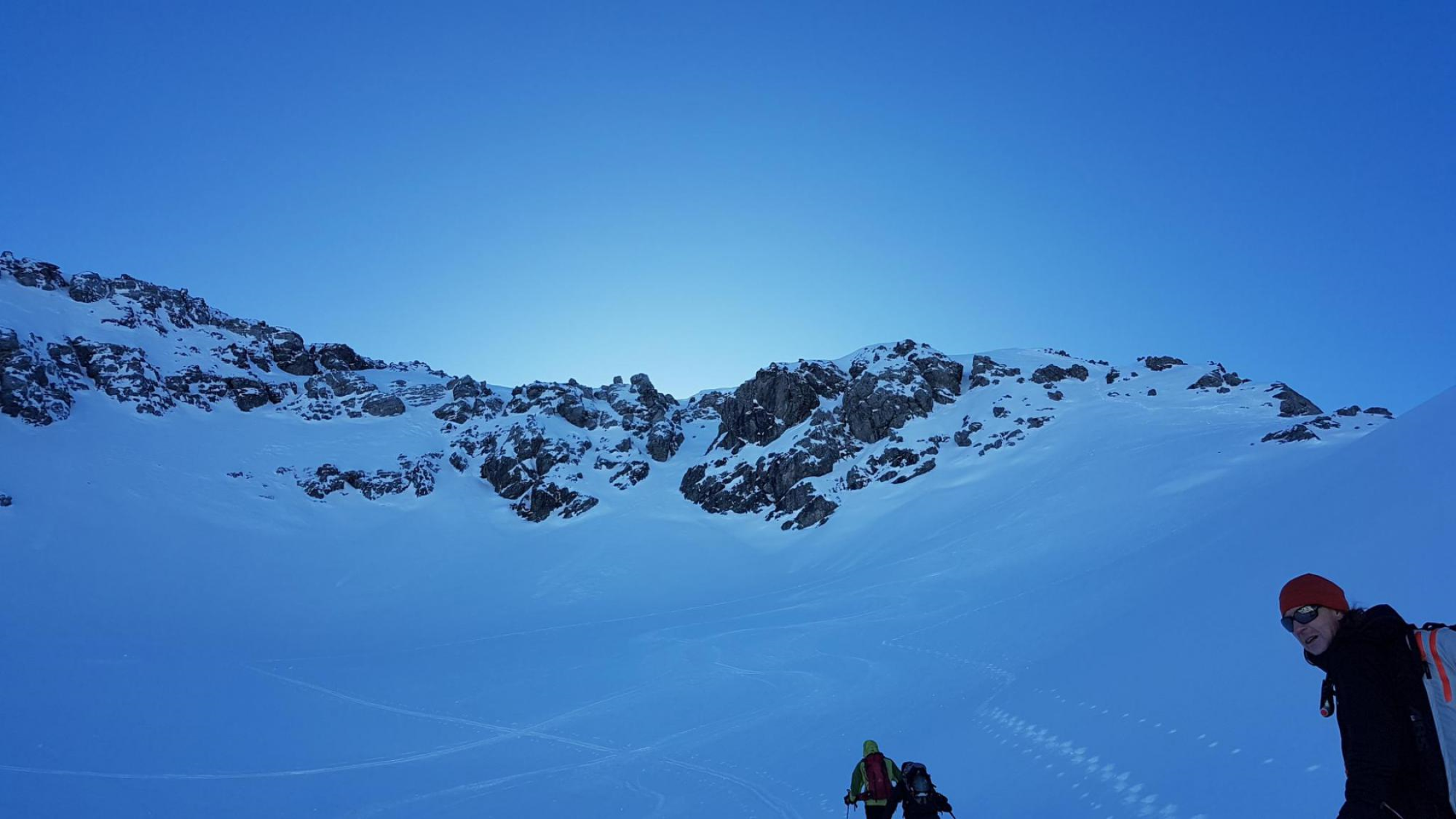Skitechnisch ist derzeit eigentlich nur der steile Gipfelhang schön (200HM). Landschaftlich natürlich super, waren die einzigen am Gipfel.