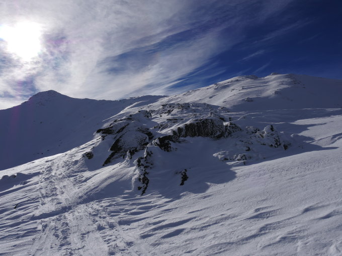Heute noch günstige Verhältnisse in der Augstbordregion. Ab etwa 2500 ist die Schneedecke vom Wind geprägt lässt sich aber gut fahren. Die Aufstiegsspur direkt ab Bergstation vom Skilift ist etwas gesucht, besser wie auf der Skitourenkarte eingezeichnet in einem weiten Bogen ostwärts den ersten Steilhang umgehen. Graben im Gorpatbach zwischen H 2000 und P.1798 ist ordentlich zerpflügt und kein wirklicher Genuss, alternativ über die Pisten abfahren.