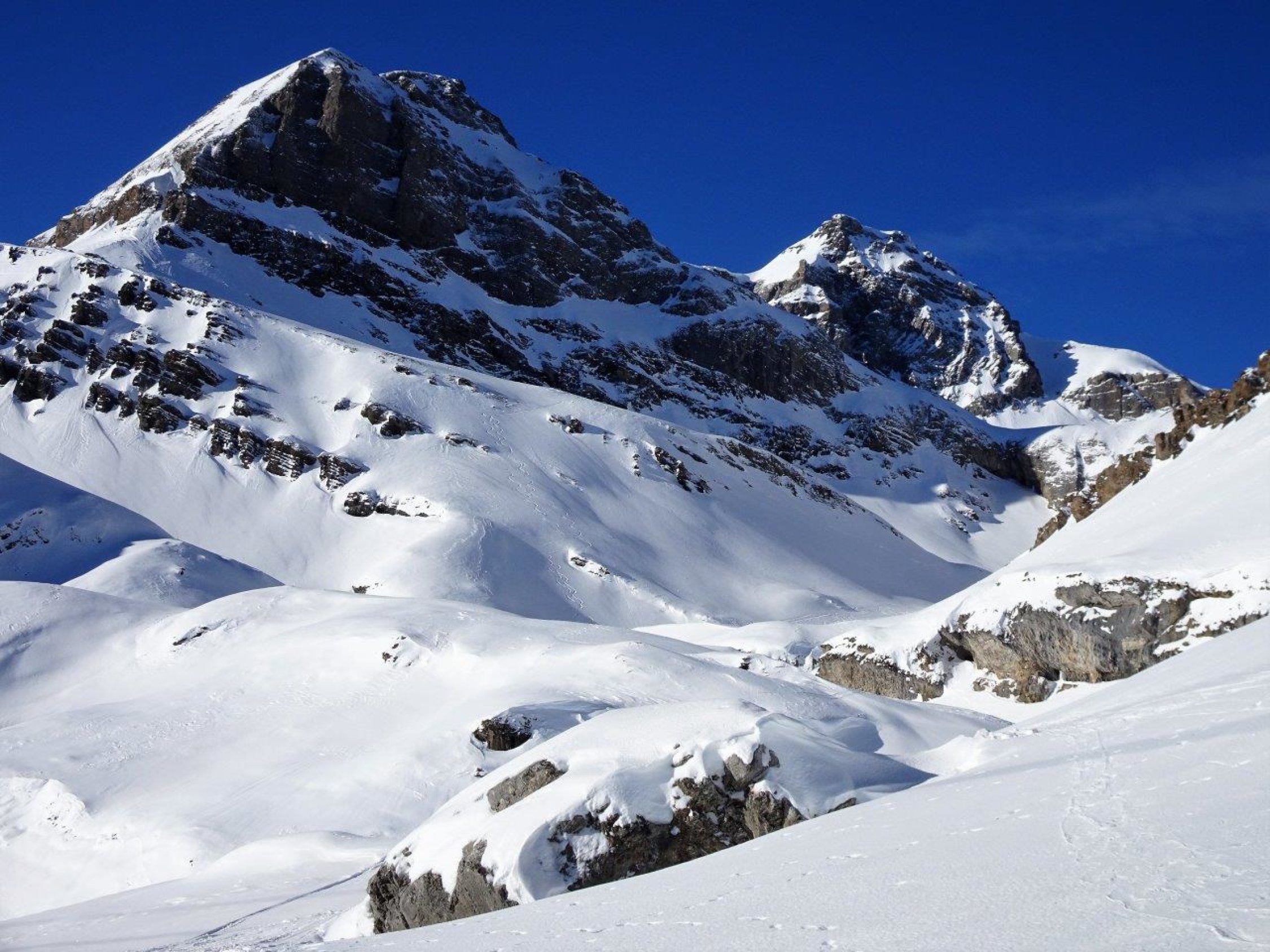 über das Wochenende war eine Sektion des SAC vor Ort und unterwegs daher die vielen Spuren am Berg. Heute habe ich keine anderen Türeler angetroffen.