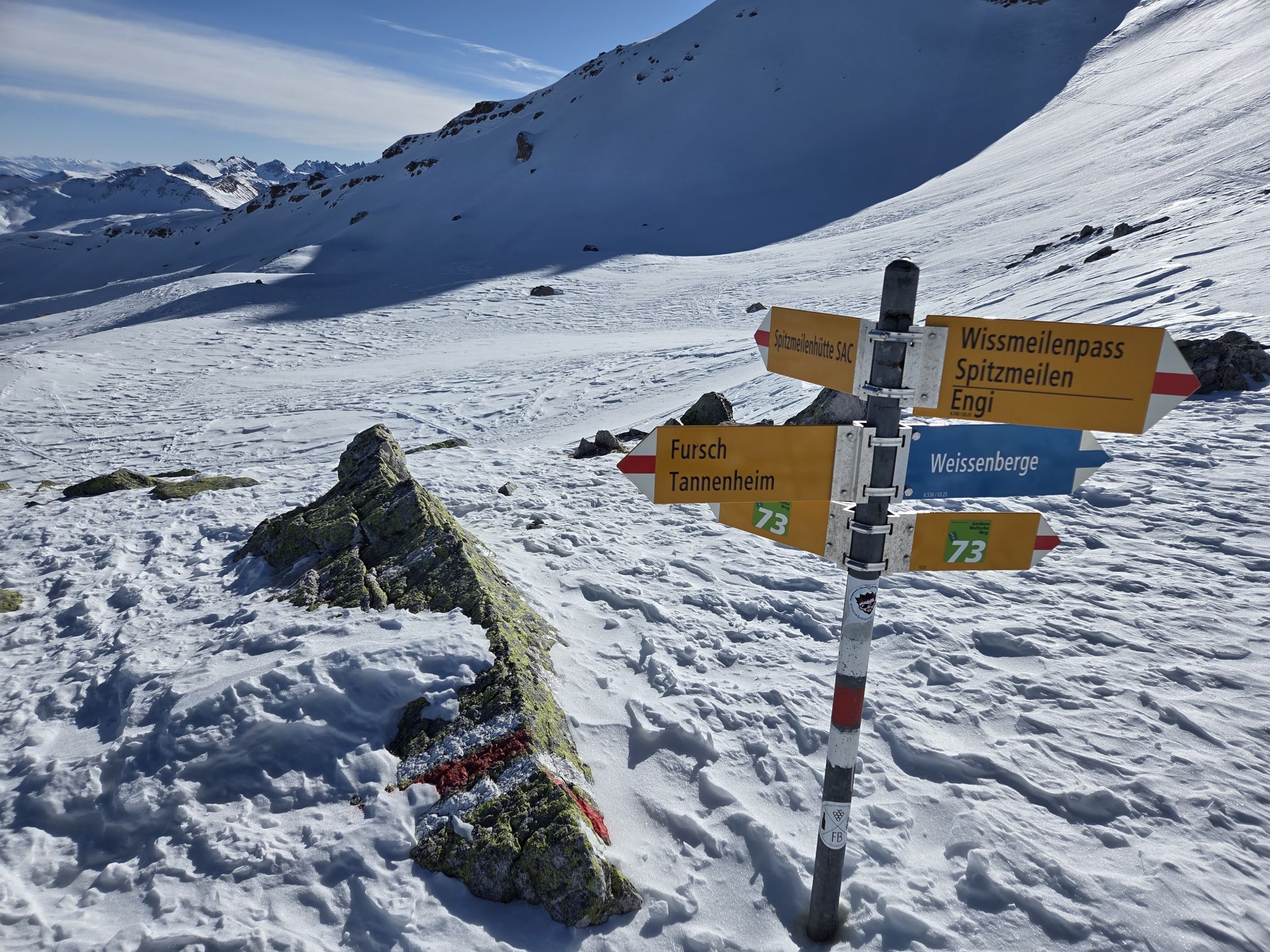 Angefellt bei Alp Fursch. Aufstieg allgemein wenig Schnee. Viel abgeblasen. Viel Gebüsch in der Ebene. Schnee ist stark windbearbeitet und gepresst. Ab Schafläger gut geschlossene Schneedecke.