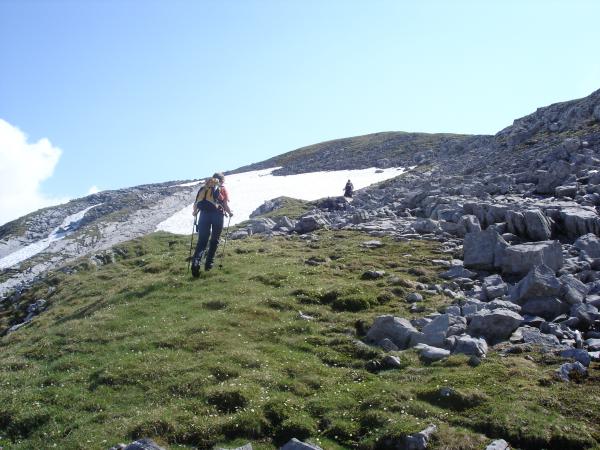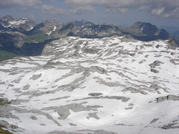 Das grosse Karstgebiet Mären ist noch zu einem schönen Teil mit Schnee bedeckt. Ideale Verhältnisse