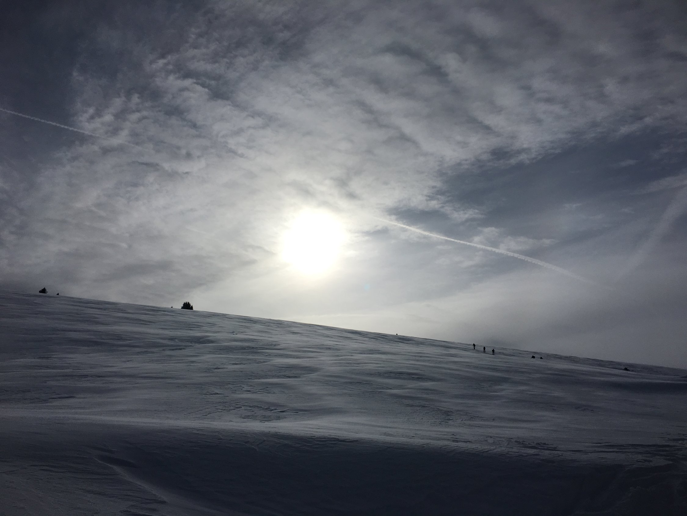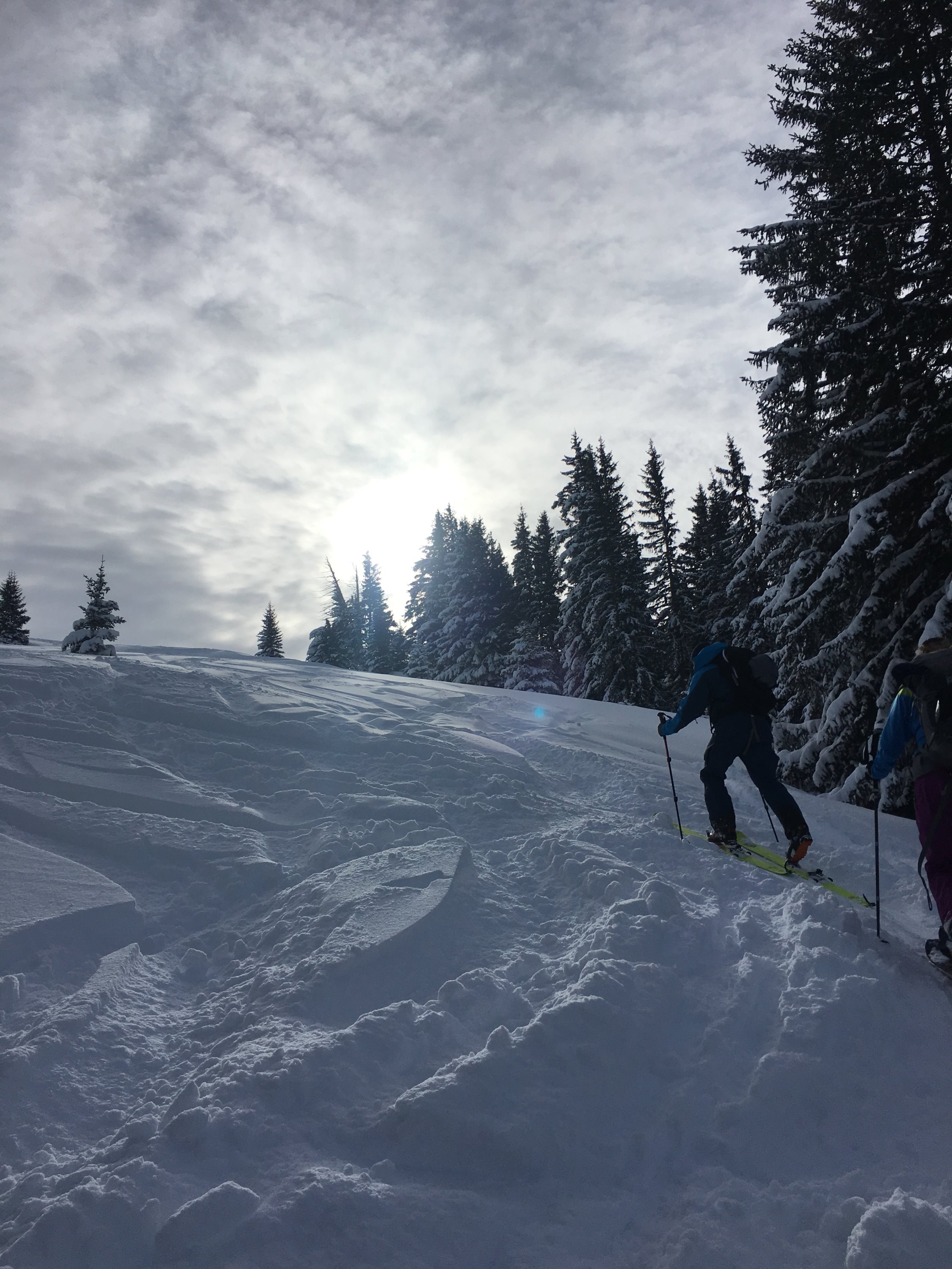 Wetter eher besser als erwartet und gemeldet (siehe Bilder) aber viel Wind. Desshalb sind wir auch nur bis Punkt 1868 Aufgestiegen und haben den heute wenig lohnenden Teil zum Gipfel ausgelassen. Dafür nach super Abfahrt bis ca. 1550 m, Wiederaufstieg zu Punkt 1868 und den schönen Powder nochmal gerockt, das hat sich sehr gelohnt.