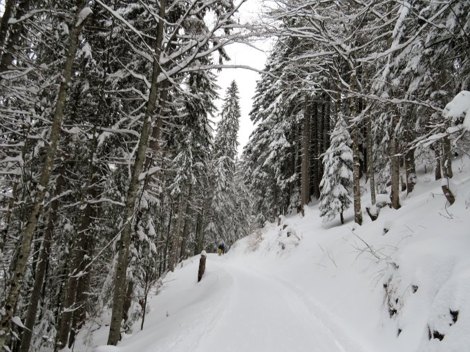 von Weglosen bis ca. 150 m oberhalb Drusberghütte feinster Pulverschnee; weiter oben stark windbearbeitet, ganz oben dann fast total abgeblasen. Lohnt sich trotzdem! Aufkommende stärker werdende Windböen ab 12 Uhr.