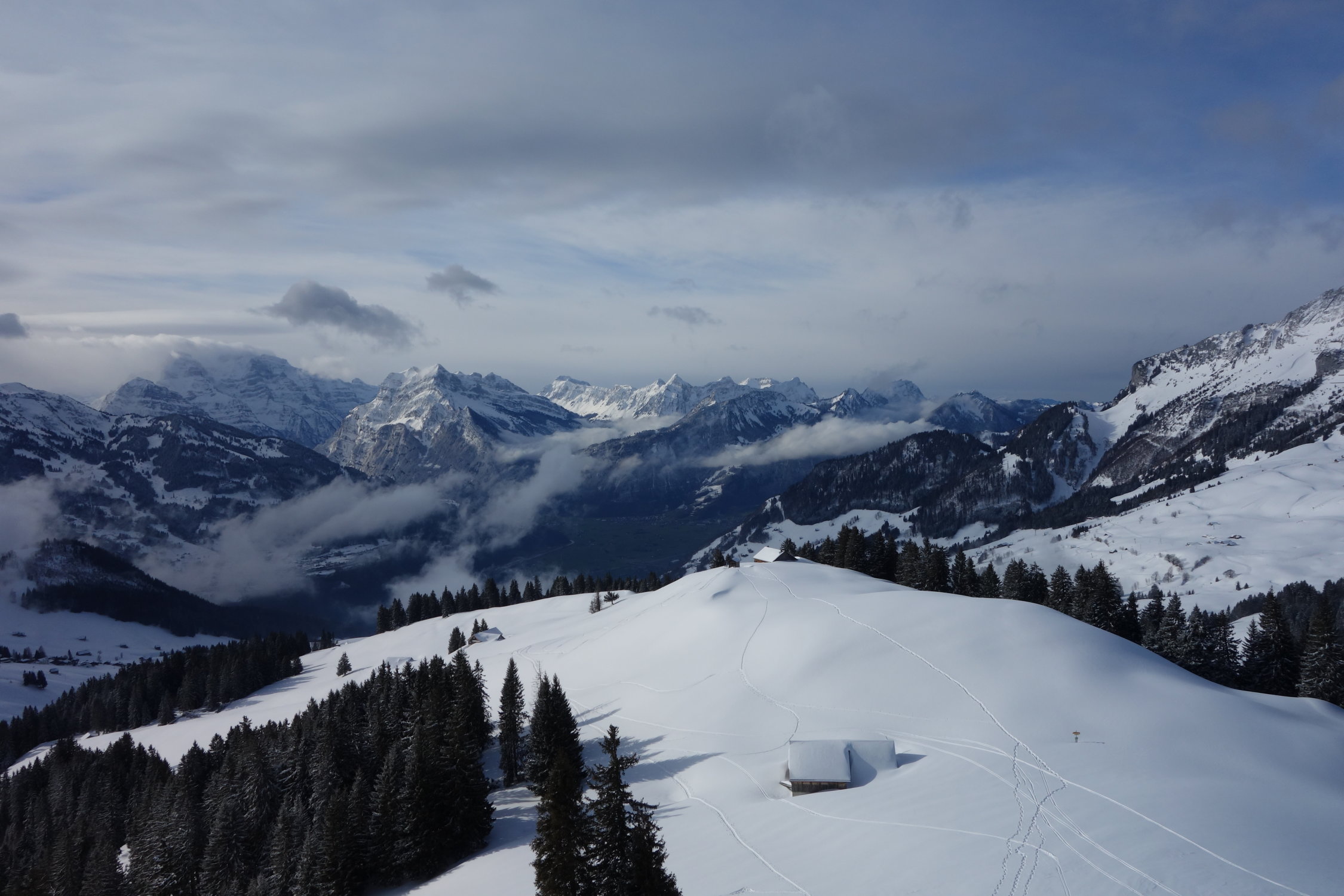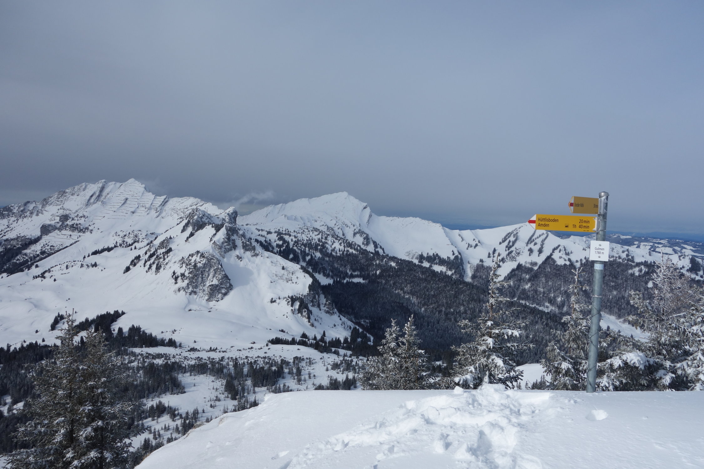 Um ca. 13:45 am Parkplatz, Schnee unten schon leicht klebrig. Während dem Auftstieg mehrer mal Wumm-Geräusche gehört und Boden Senkung gespürt, jedoch keine Bretter oder Rutsche an benachbarten Hängen Richtung Spee und Mattstock beobachtet.