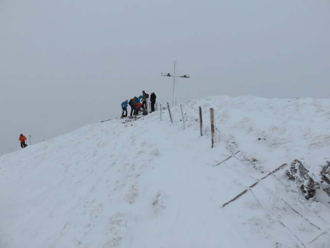Ab Bernhalde gute Schneeverhältnisse. Gipfel etwas verblasen. In Stein, knapp genügend Schnee.