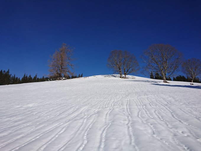 Um 10 Uhr Schnee im Aufstieg schon etwas aufgesulzt. Je nach Exposition in der Abfahrt Prachts Sulz oder dann schon durchgebrochen.