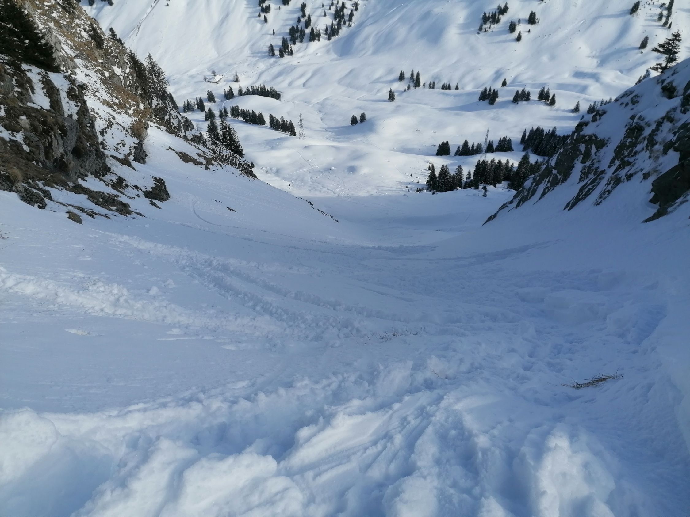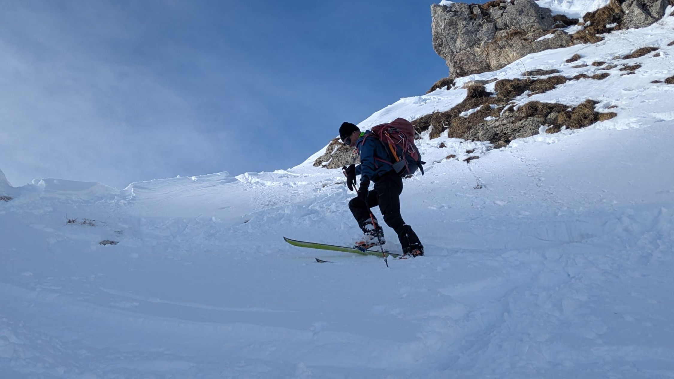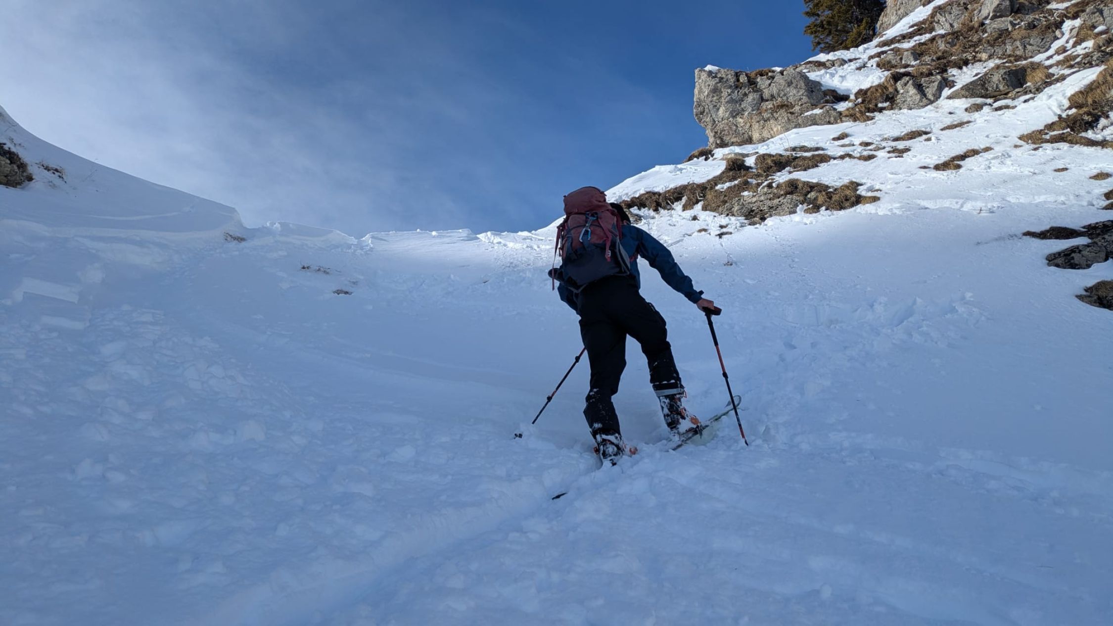 Wunderbare Halbtages-Skitour hoch über dem Schwarzsee. Der Aufstieg erfolgte von Schwarzsee über die Untere Euchselsalp, und die Südostflanke in die Fochsenflue-Lücke 1945m. Diese befindet sich zwischen der Fochsenflue und Spitzflue. Der Hang ist bis zu 40 Grad steil.