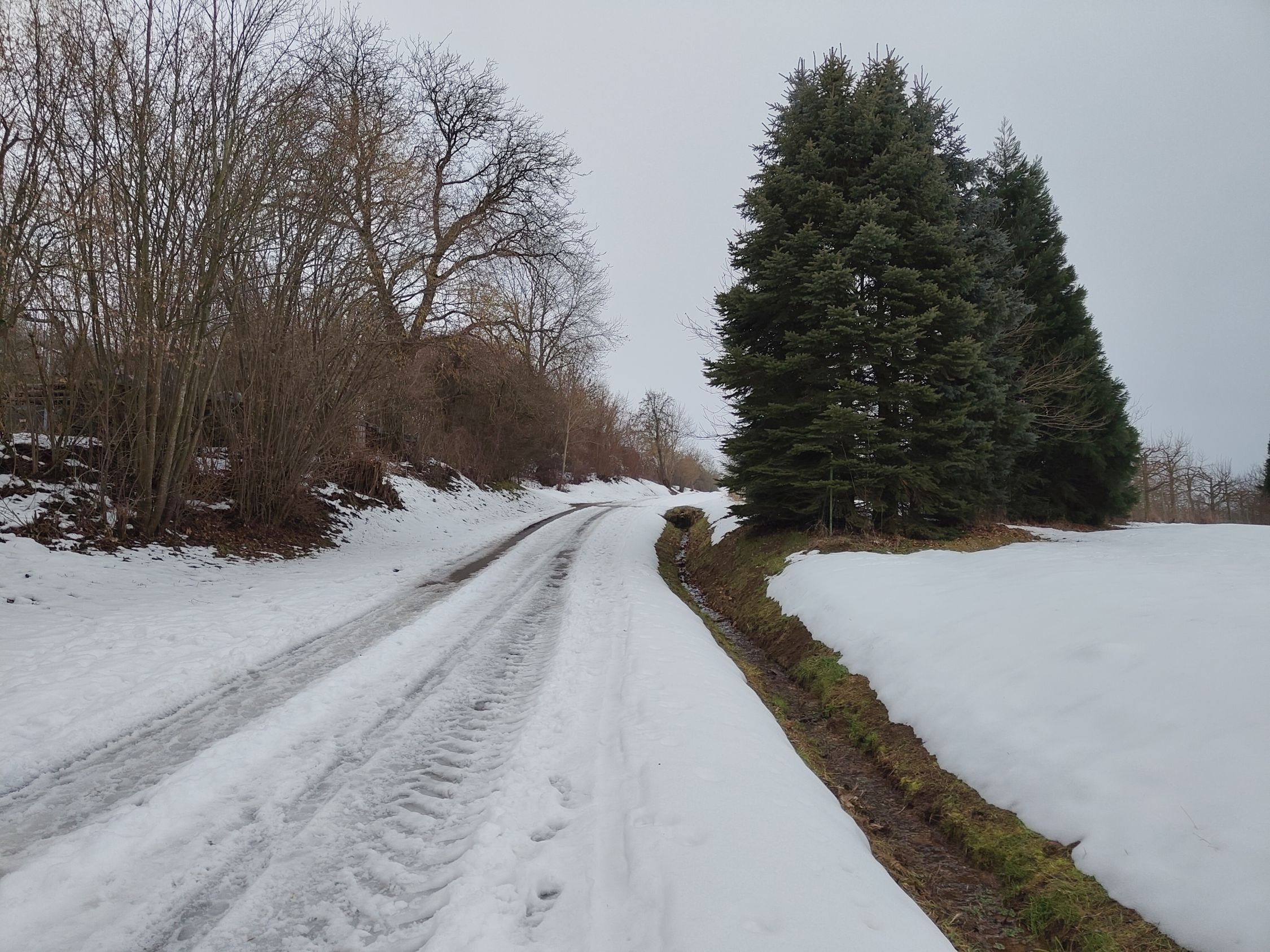 Dafür reicht der Schnee ab dem oberem Parkplatz in Kirchehrenbach gerade so für Aufstieg und Abfahrt.