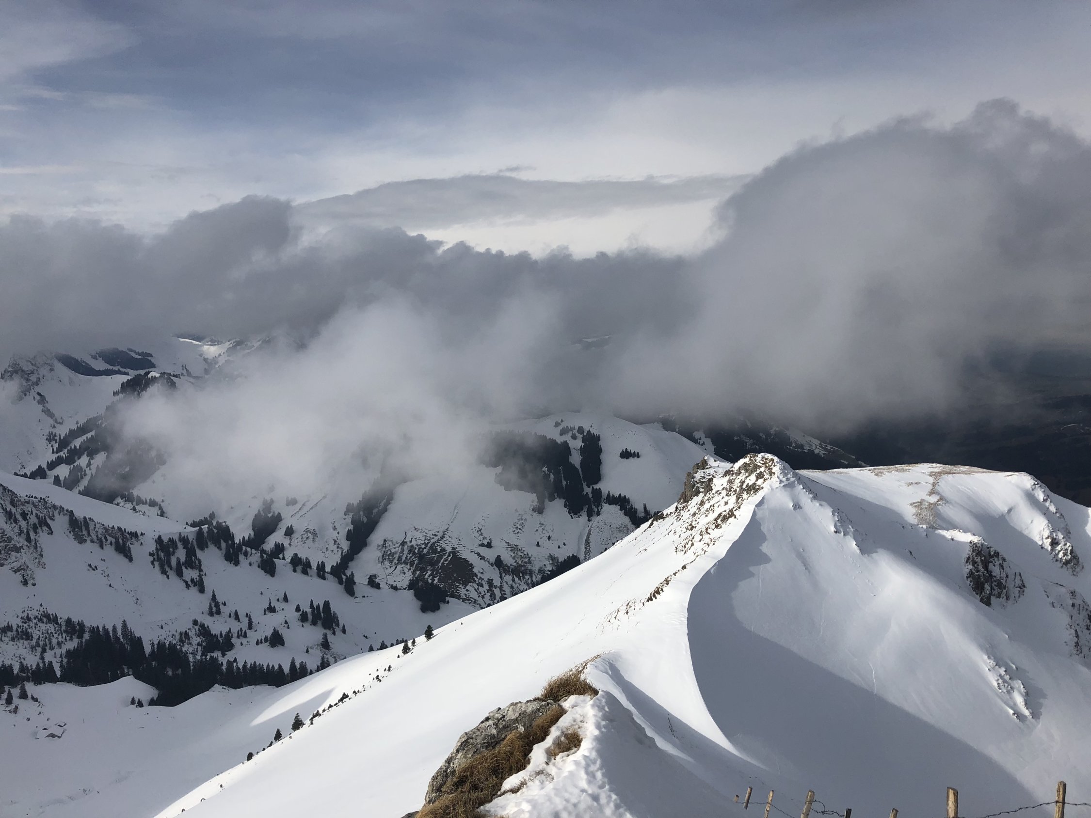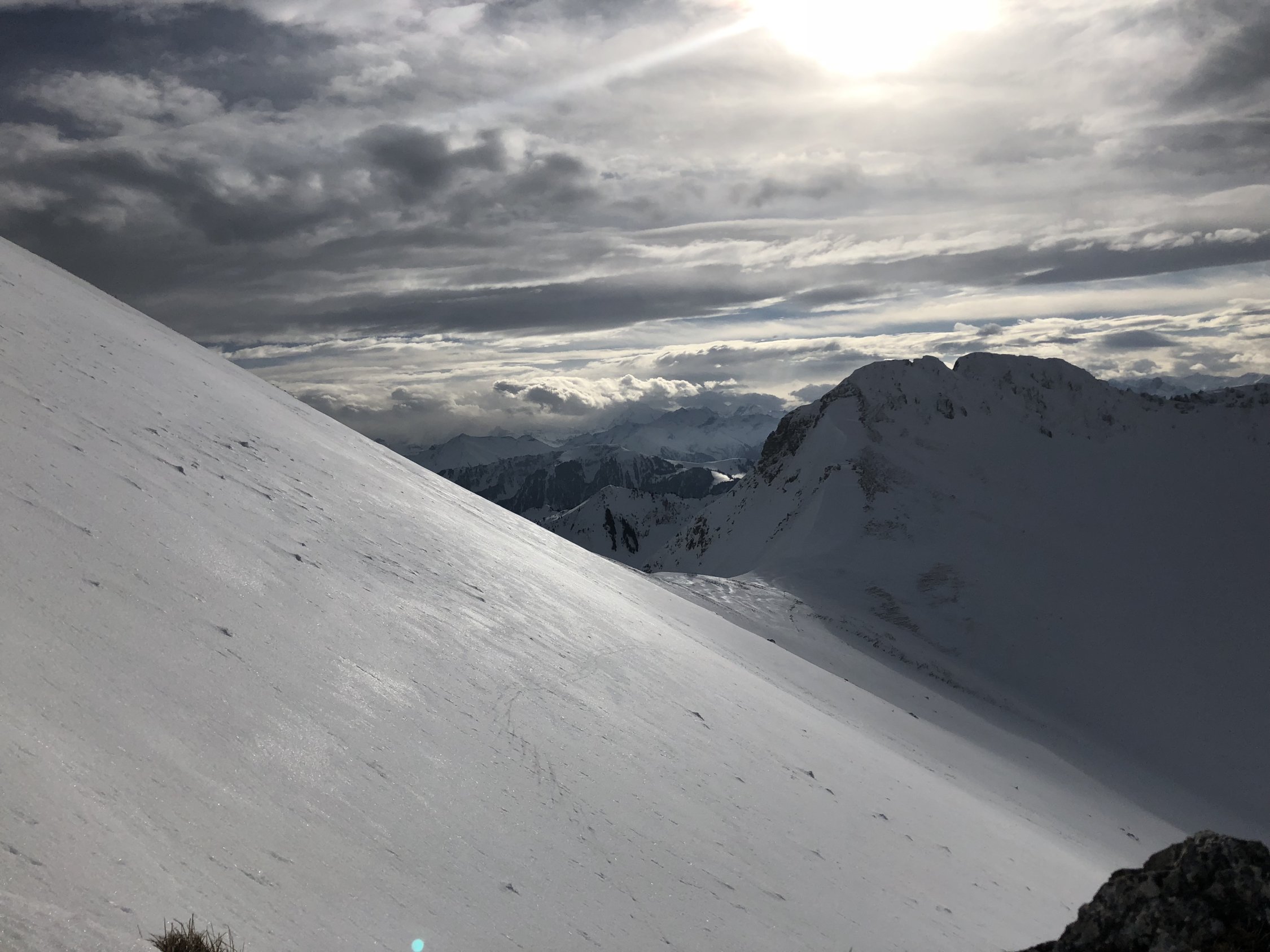 Ab Schwefelbergbad gut Schnee, teils in die Rinnen (insb. im Ofen) ausweichend. Start ohne Harsteisen, ab "Ofen" mit. Gipfelflanke sehr hart bis eisig. Für mich war heute ohne Steigeisen und Pickel der Gipfel nicht drin, schon vor dem Skidepot auf den Westgrat ausgewichen und dort die Aussicht genossen. Abfahrt sehr hart, würde jedoch bei genügend Sonneneinstrahlung bestens aufsulzen, ich war um 11:45 leider deutlich zu früh dran.