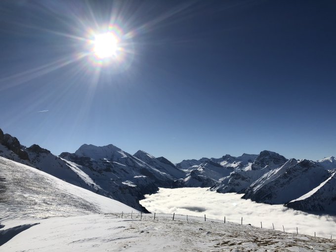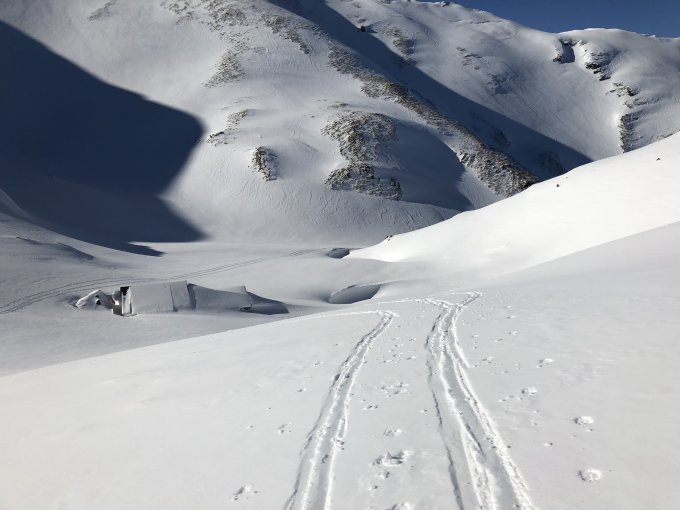 Ab rund 2‘000 hat es z.T. Presspulver oder zumindest eine tragende Schicht. Der Grat zum Gipfel ist völlig abgeblasen. Ca. 50 hm muss man die Skis tragen. Unterhalb 2‘000 ist der Schnee vom Regen geprägt. Es gleicht einer Wellblechpiste, leider nicht tragend und daher kaum fahrbar. Noch weiter unten hat es gar keinen Schnee mehr. Talabfahrt nach Kiental ist nicht möglich.