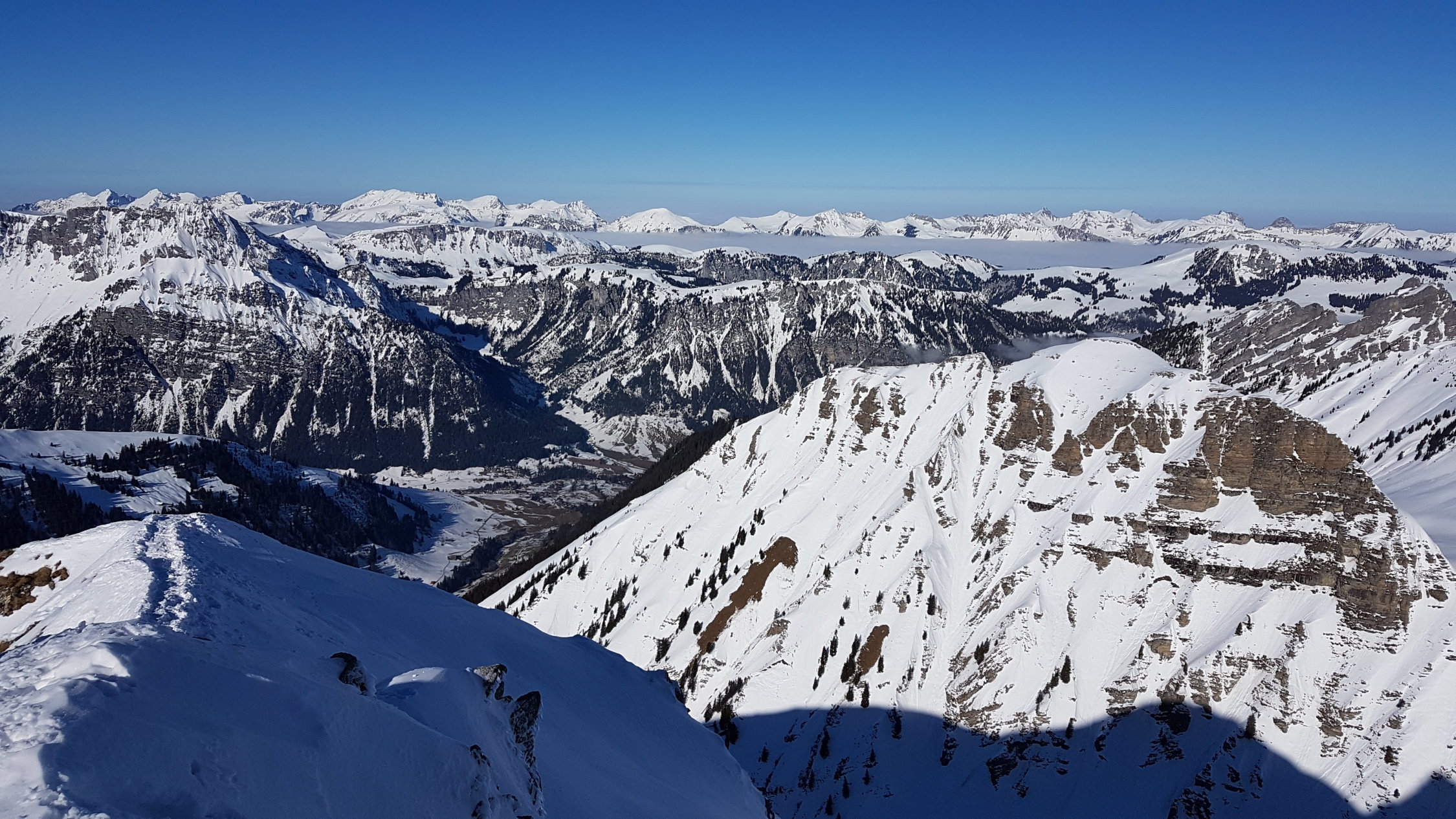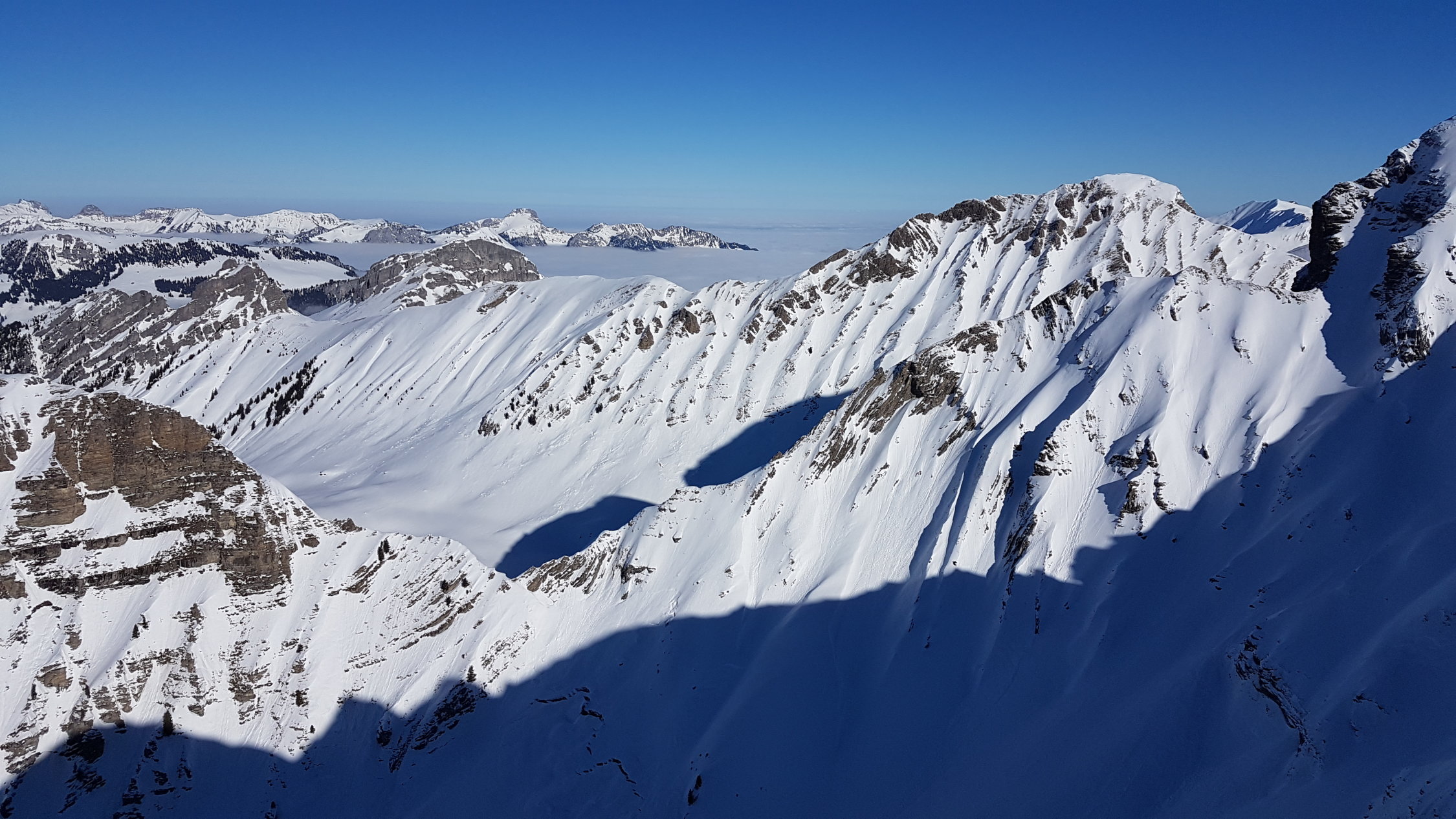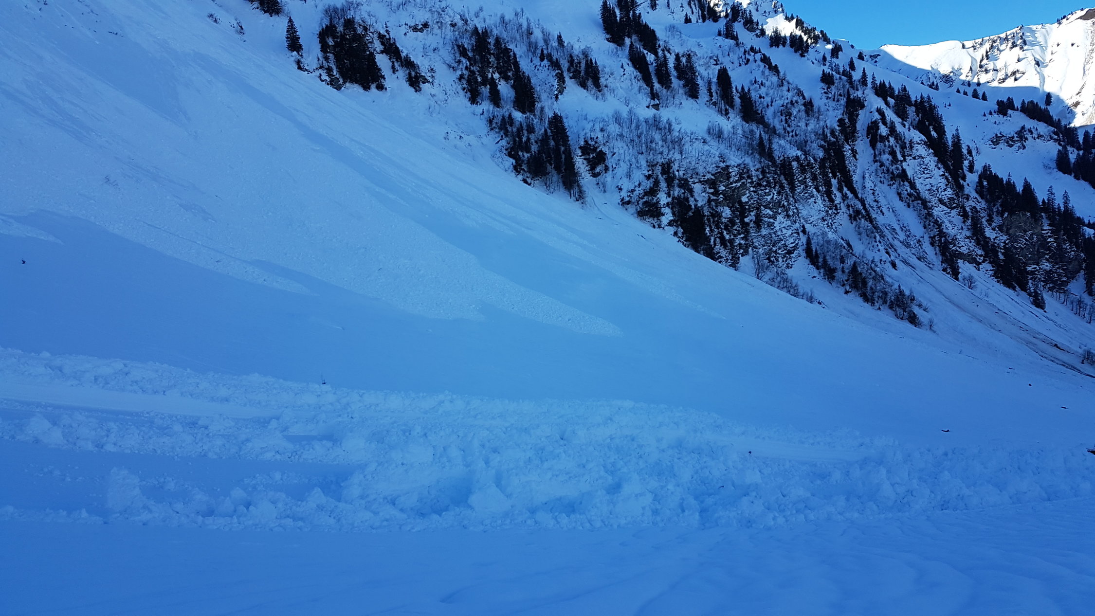 Imposant sind die Schneerutsche unter den Türmlihore. Derart weit runter kamen sie nicht einmal im Lawinenwinter 1999. Auch die zahlreichen Fischmäuler in jeder Hanglage sind beeindruckend.
