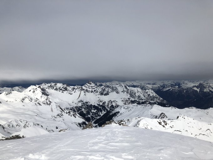 Enorm viel Schnee, durch den starken Wind der letzten Zeit sehr windverpresst, Pulver mangelware. Dennoch eine sehr lohnende Tour.