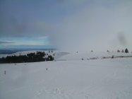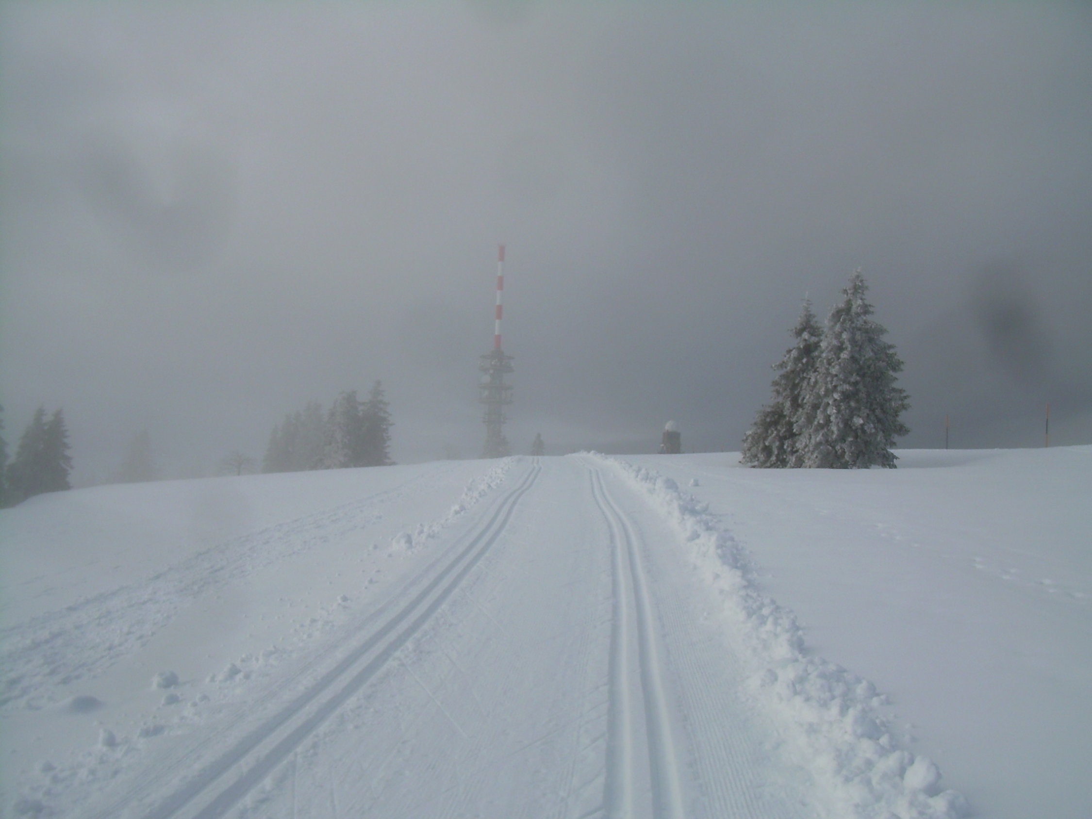 Erstaunlich gut, angesichts der Tatsache, dass ich gestern am Schiberg die Schneeschuhe bis auf ca. 1400 m hochtragen musste. Durchgehend Schnee ab Notschrei. Das kleine Zwischentief sorgte am Feldberg für recht wolkige und neblige Bedingungen. Just bei Ankunft im Grüblesattel lichtete sich der Nebel, um später bei der Abfahrt wieder zurückzukehren. Eine tendenzielle Wetterbesserung ab dem Nachmittag machte sich aber bemerkbar.