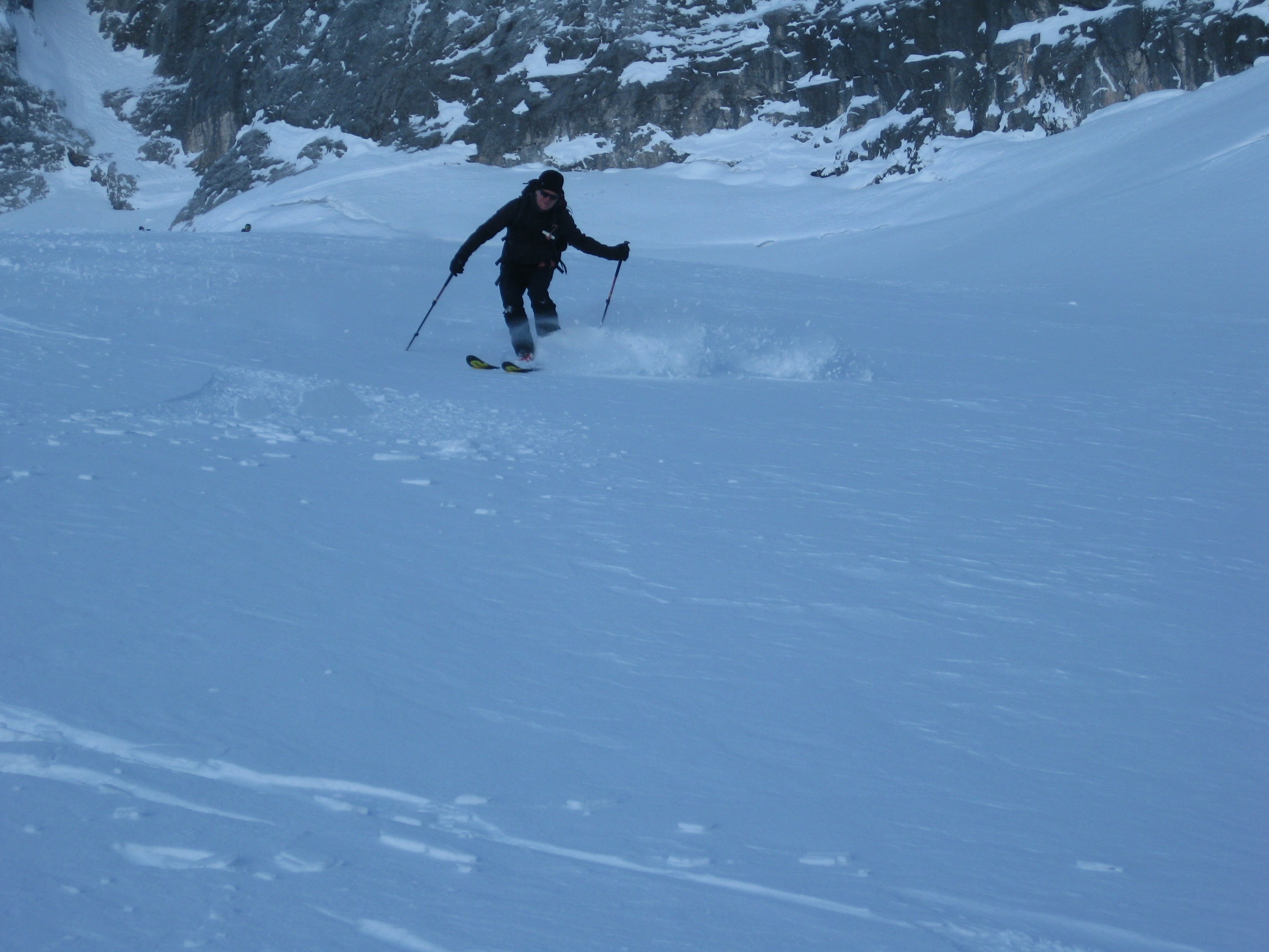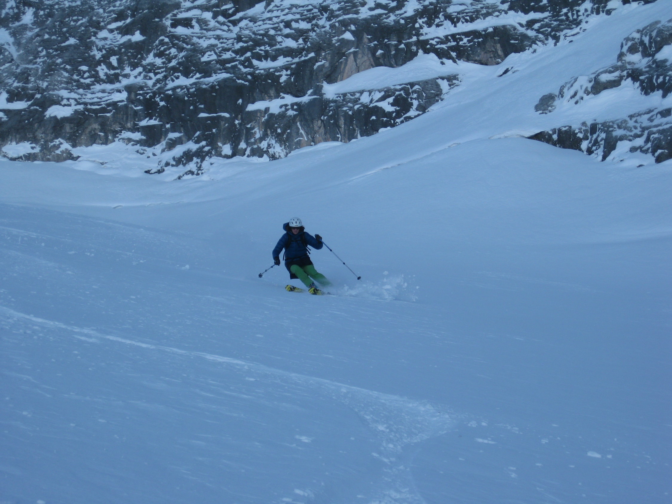 Schöner Plattenpulver in der Abfahrt durch den Rachen.