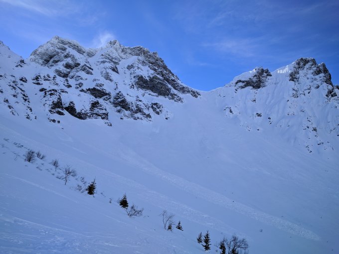 Start im Schatten aber bereits warm, zu Beginn wie auf Piste, dann kurz (ca. 1400-1600) mühsamer Bruchharst, danach hart. Oben (ab Chummli) ab 11:30 bereits leichter Sulz. Ganze Route gut eingeschneit.