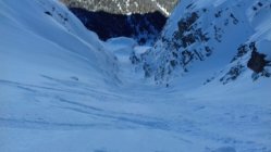 Im letzten teil des Canalone (+/-1700m) droht eine Gleitschneelawine an der linke Seite.