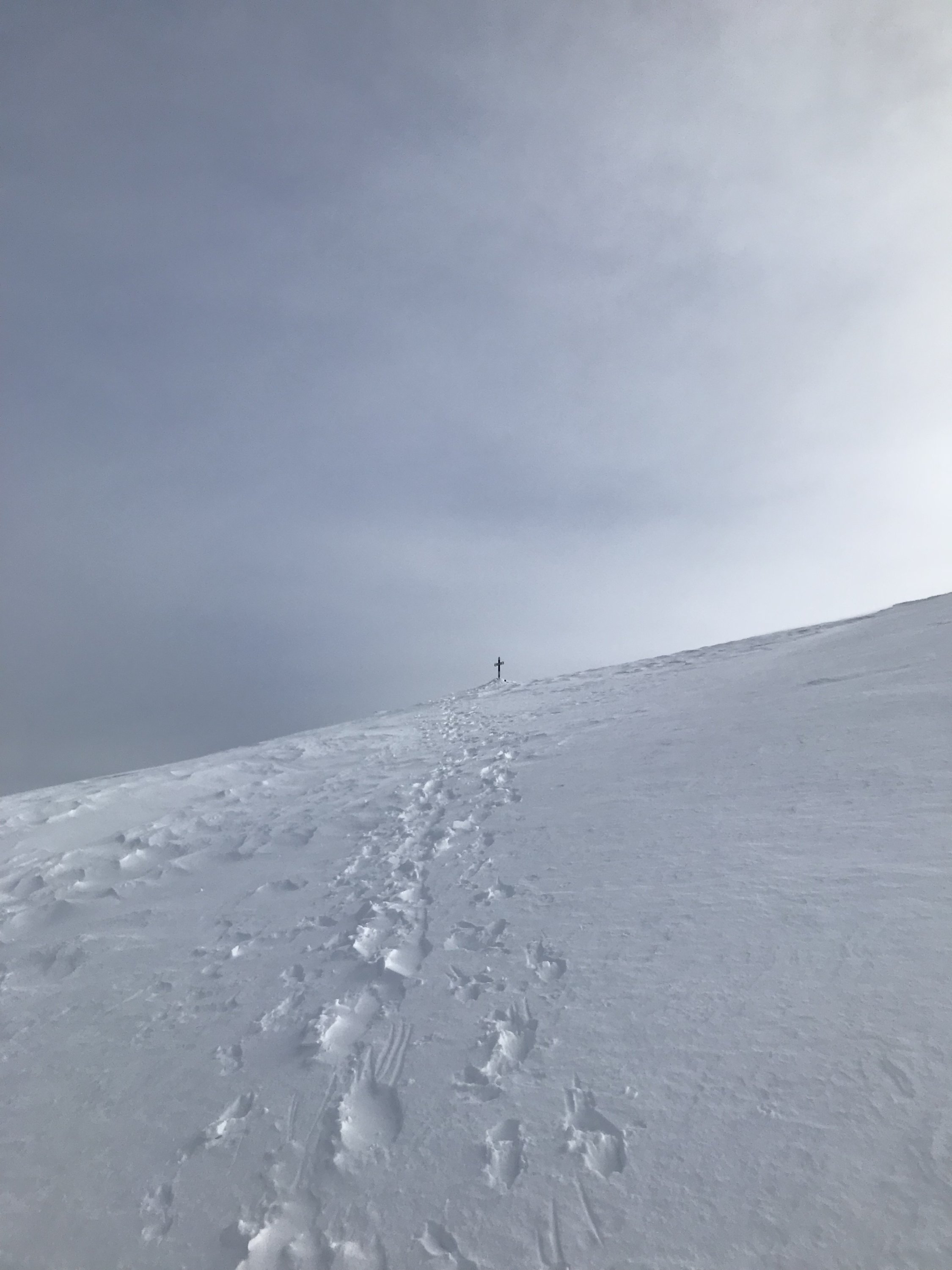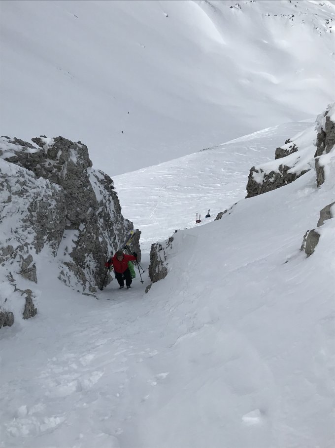 Guete aber auch zum Teil harschige Verhältnisse. Der Kamin war oben eisig aber ohne Steigeisen machbar.