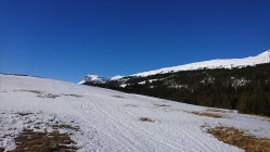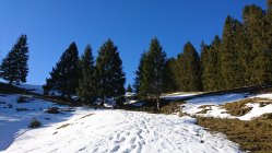 In der Hirsegg nur noch knapp Schnee.... aber es geht grad noch für den Aufstieg und die Abfahrt. Einmal Skis kurz tragen.