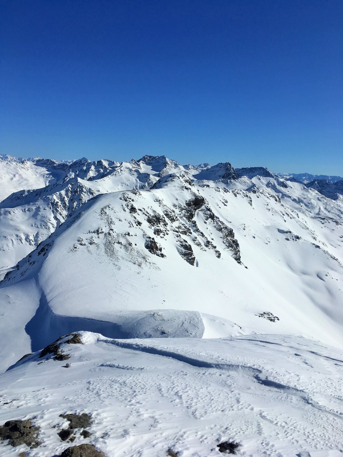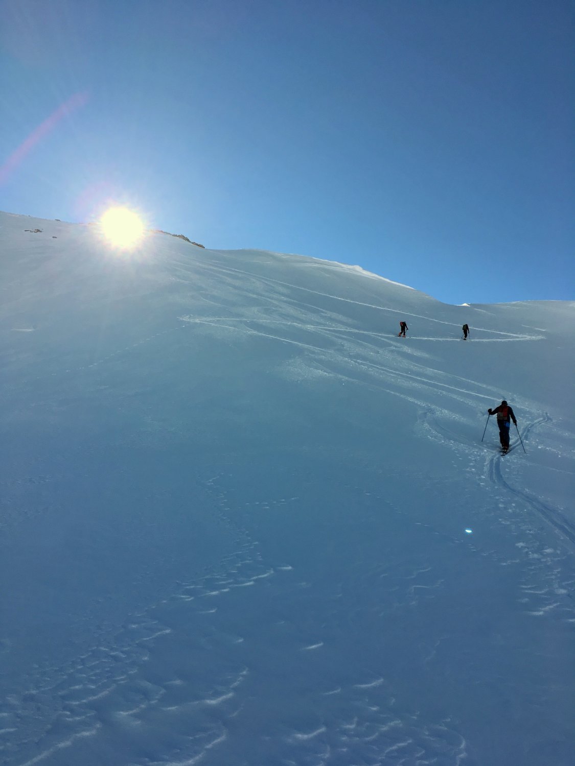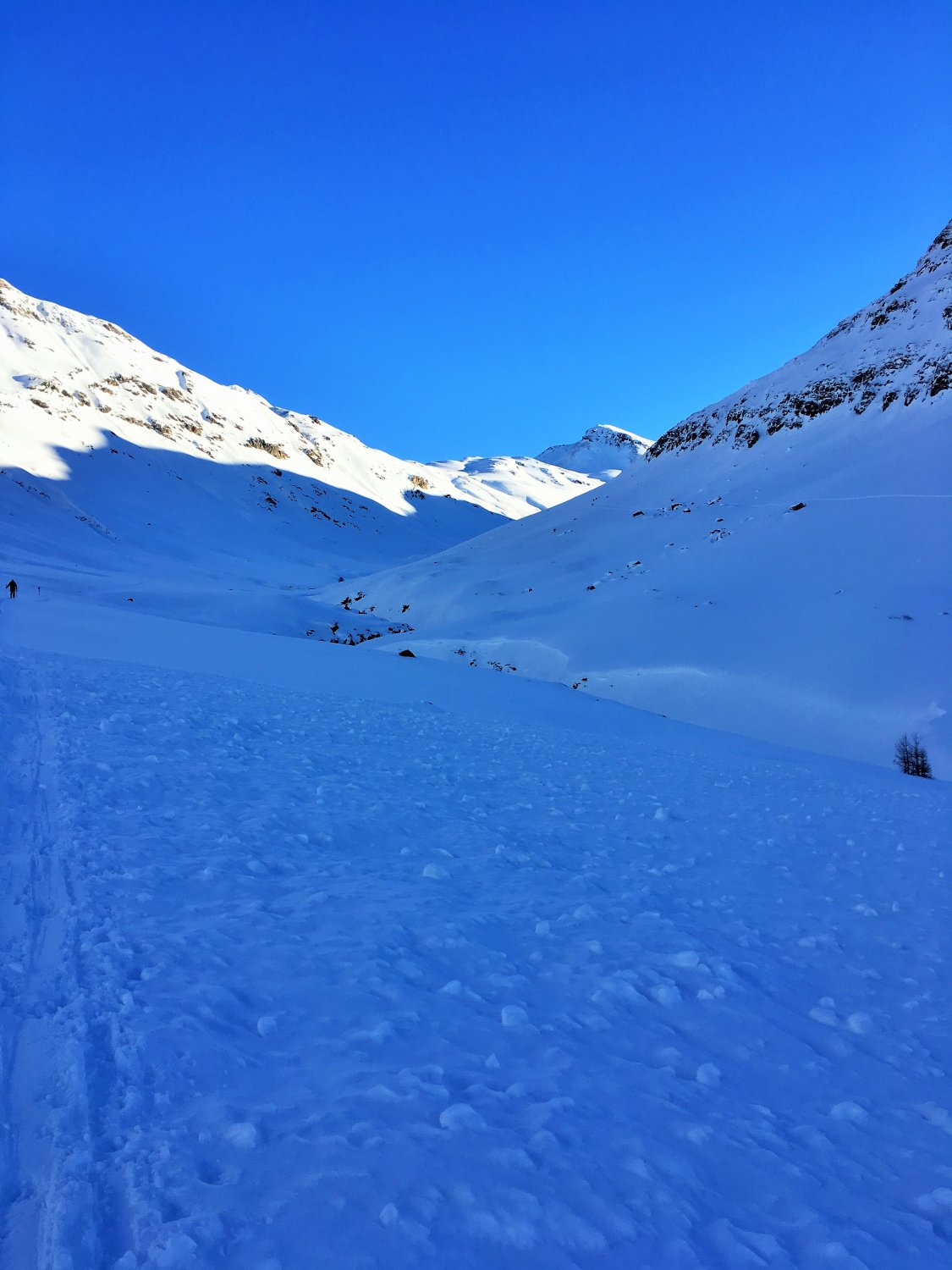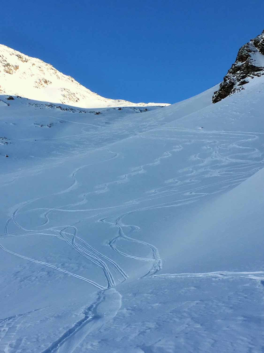 Minus 3 Grad bei Start Parkplatz Diavolezza 2093 m, windstill. Pulverschnee vom feinsten ganze Route. Ausgezeichnete Spur von P. 2582 bis 2832, herzlichen Dank. Von P. 2832 sind wir ziemlich direkt den unverspurten Hang hinauf und dann Richtung Gipfelflanke, wo wieder eine tadellose Spur vorhanden war. Grandiose Rundsicht auf dem Gipfel. Abfahrt ein Genuss mit vielen Hängen für eigene Linie. Wir sind ab P. 2531 auf der linken Talseite des Val da Fain abgefahren, zuerst tolle Schwünge und nachher lange Traverse in einmaliger Winterlandschaft via Laviners dal Piz Alv zu Parkplatz Diavolezza. Sehr zu empfehlen, perfekte Verhältnisse.