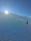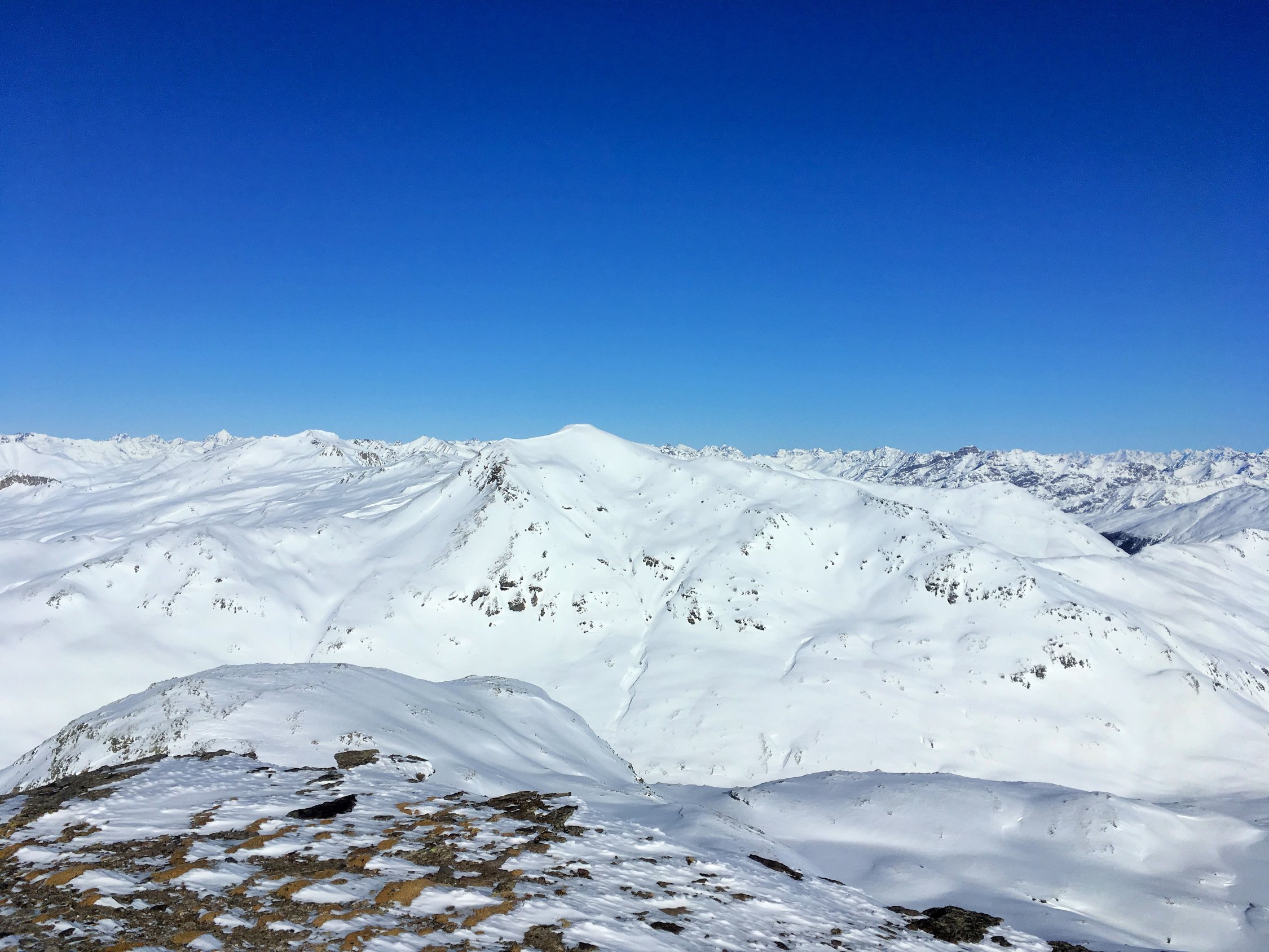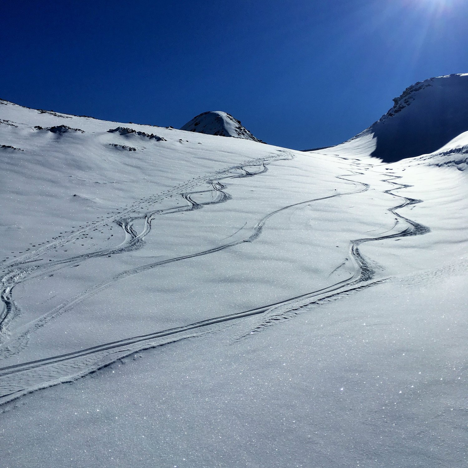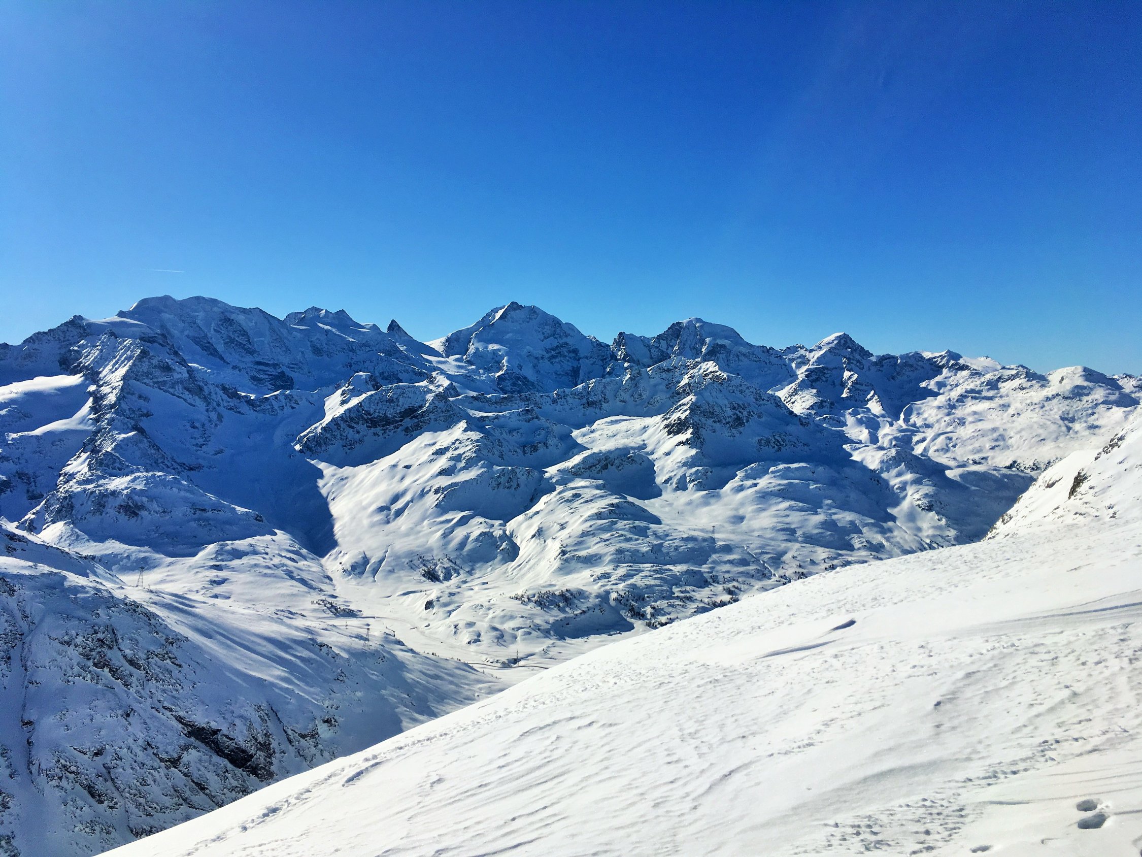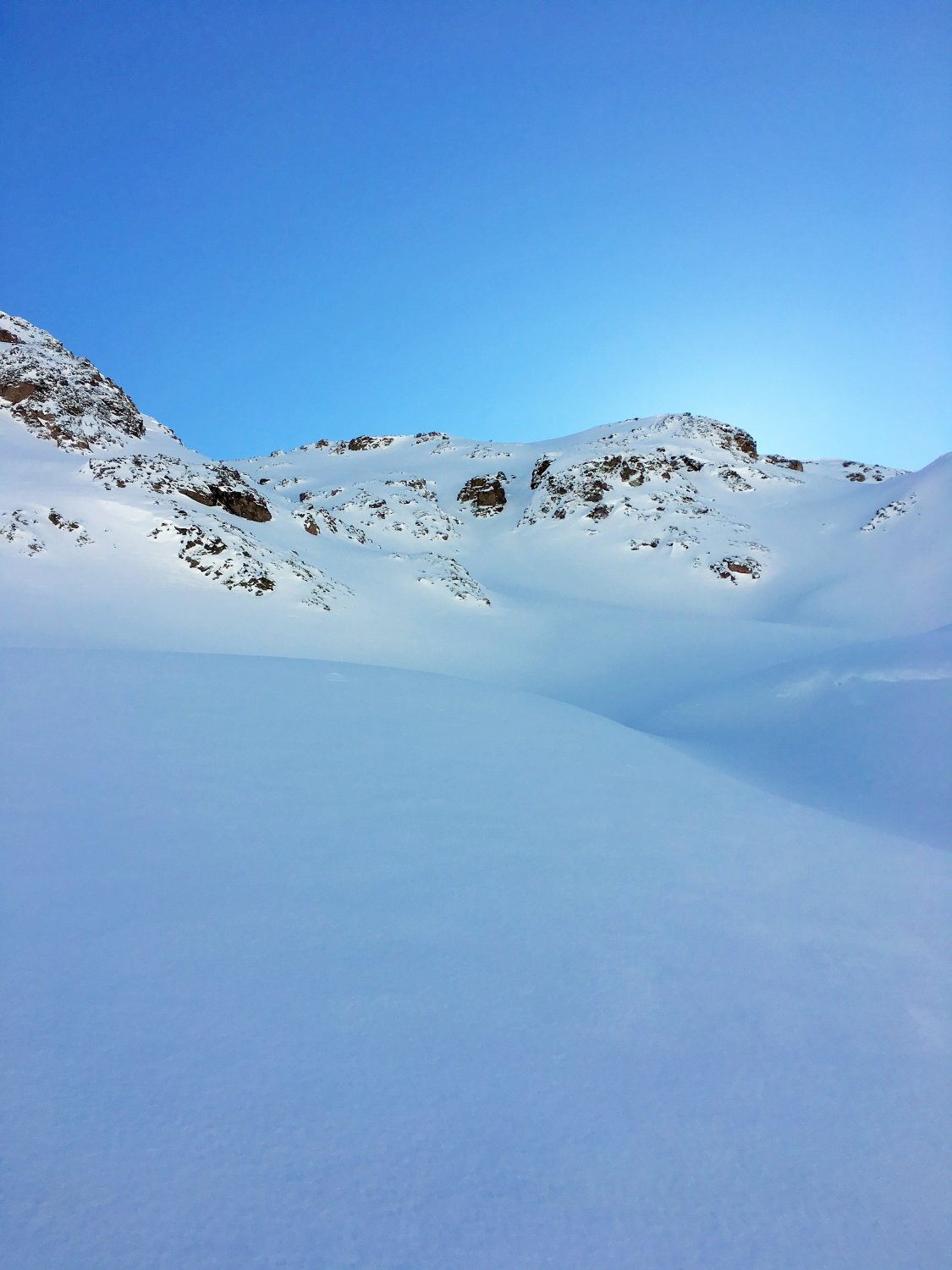 Minus 3 Grad bei Start Parkplatz Diavolezza 2093 m, windstill. Pulverschnee vom feinsten ganze Route. Ausgezeichnete Spur von P. 2582 bis 2832, herzlichen Dank. Von P. 2832 sind wir ziemlich direkt den unverspurten Hang hinauf und dann Richtung Gipfelflanke, wo wieder eine tadellose Spur vorhanden war. Grandiose Rundsicht auf dem Gipfel. Abfahrt ein Genuss mit vielen Hängen für eigene Linie. Wir sind ab P. 2531 auf der linken Talseite des Val da Fain abgefahren, zuerst tolle Schwünge und nachher lange Traverse in einmaliger Winterlandschaft via Laviners dal Piz Alv zu Parkplatz Diavolezza. Sehr zu empfehlen, perfekte Verhältnisse.