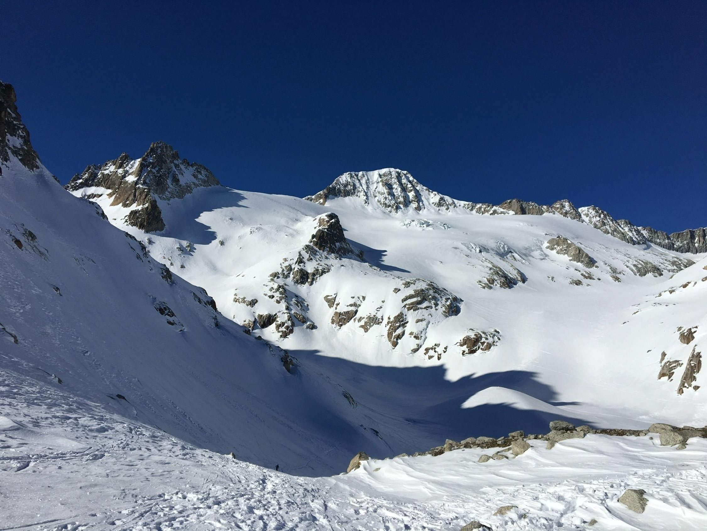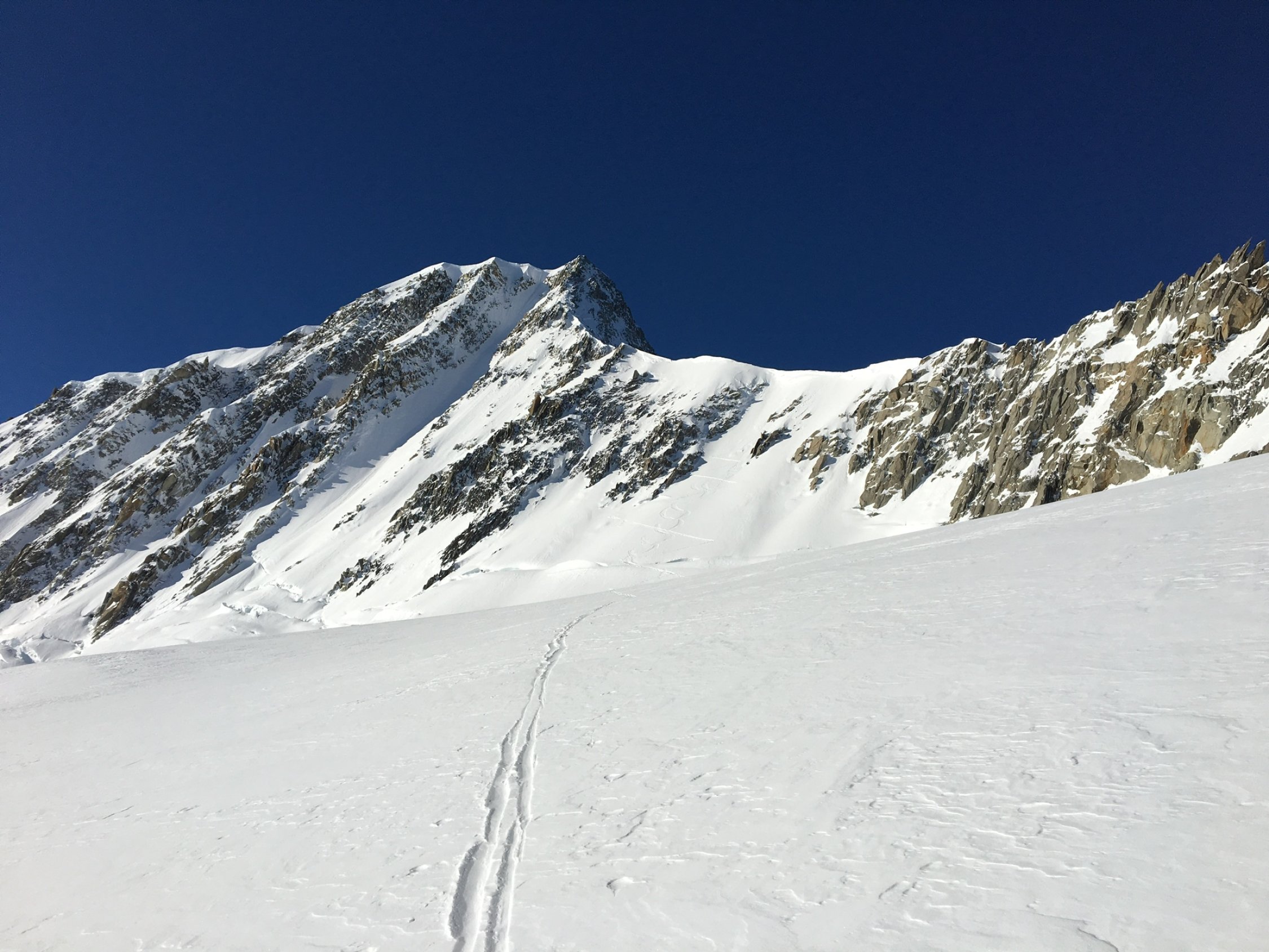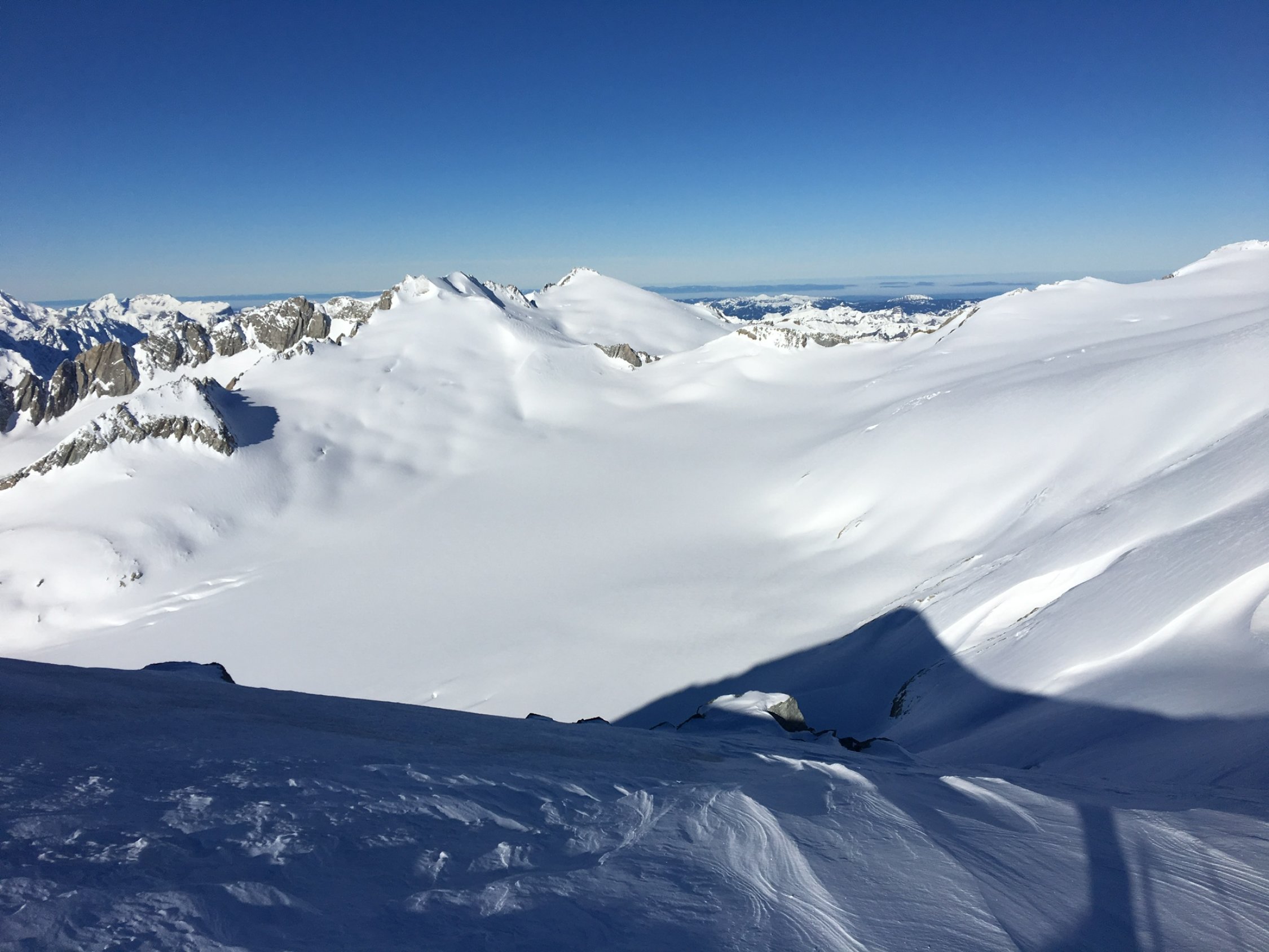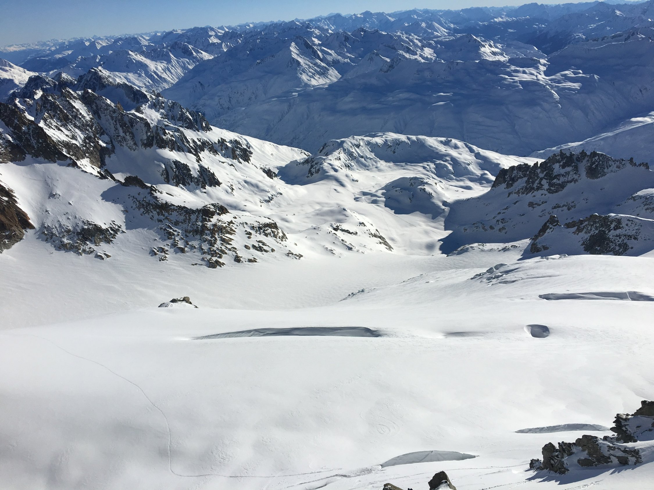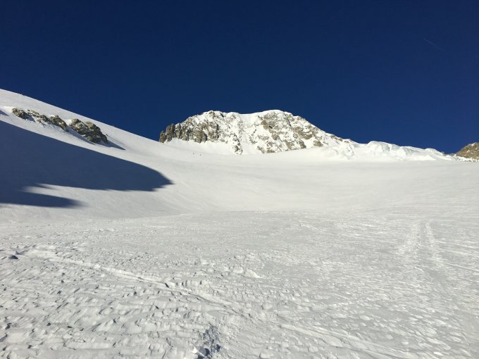 Abfahrt um 11:15 auf griffigen, etwas ruppigen Hartschnee bis Zunge Tiefengletscher, dann via P 2534 direkt hinab nach Tiefenbach, da die Hänge lohnend schienen. Bis dort schwerer, teils gedeckelter Triebschnee, 11:30 hier bereits eher zu spät, retour via Aufstiegsspur wäre bessere Wahl gewesen. Die Passstrasse zwischen Hotel Tiefenbach und Hotel Galenstock ist durch teils riesige Gleitschneelawinen grossflächig verschüttet und entsprechend gesperrt. Ab Hotel Galenstock dafürauf präparierter Strasse zum Parkplatz