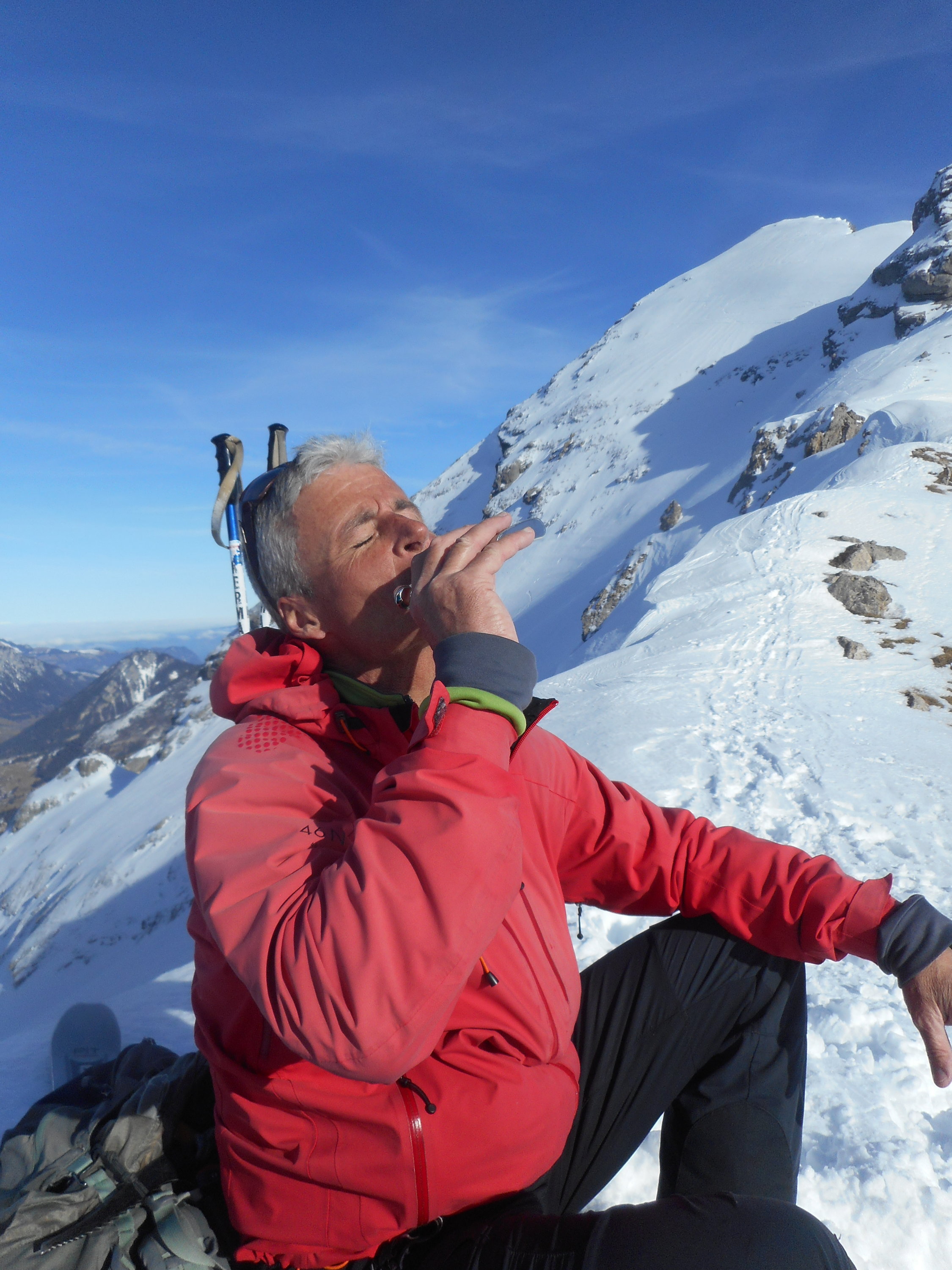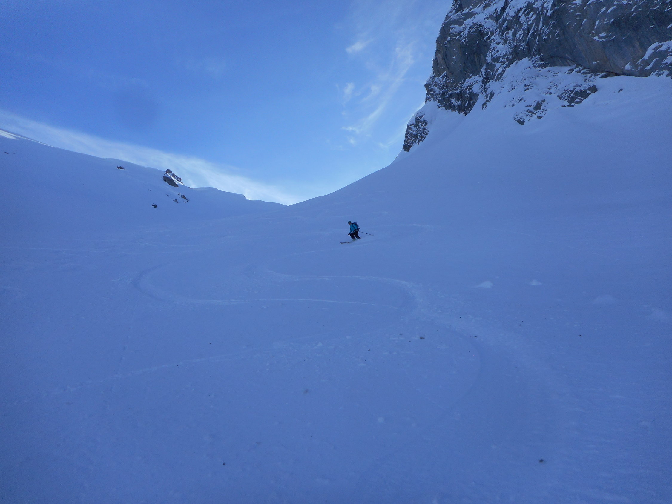 Wir waren ganz alleine auf dem Rothore. Es ist eine rassige und alpine Skitour. Einfach grossartig! Wir waren zum erstenmal auf dem Gipfel. Im Dezember 2017 bin ich mit Tochter Sarah Elena infolge Schneebrettgefahr umgekehrt.