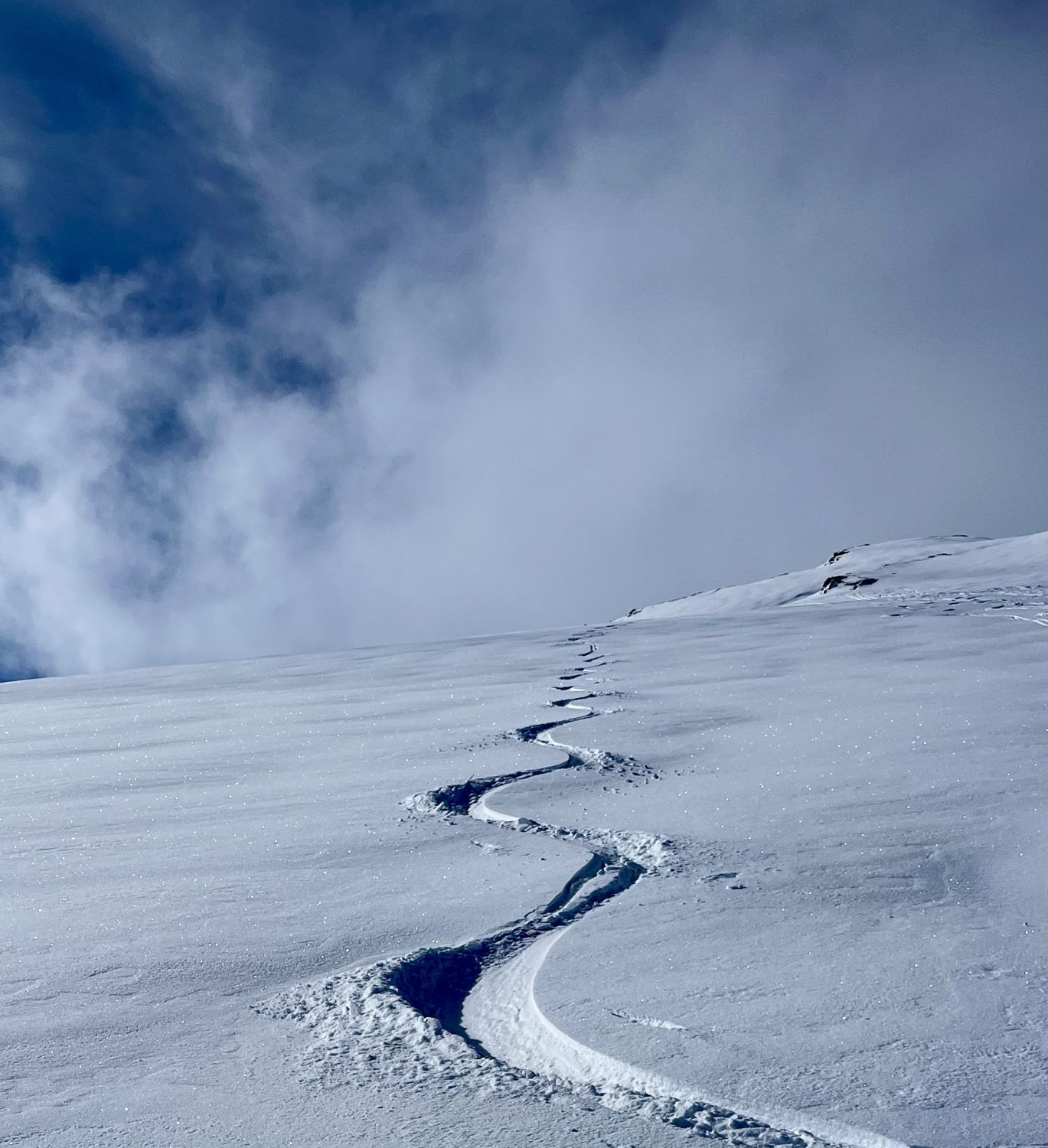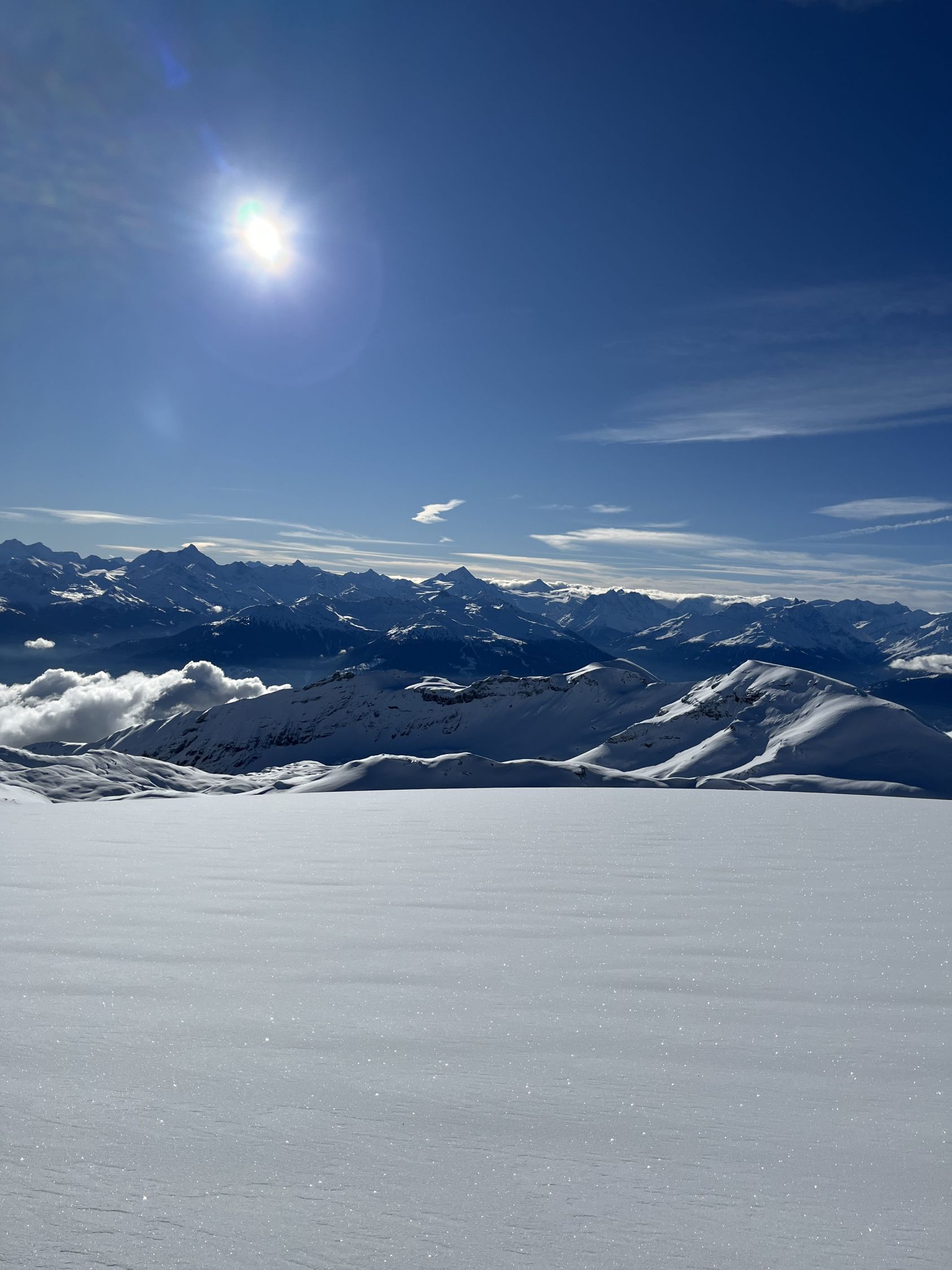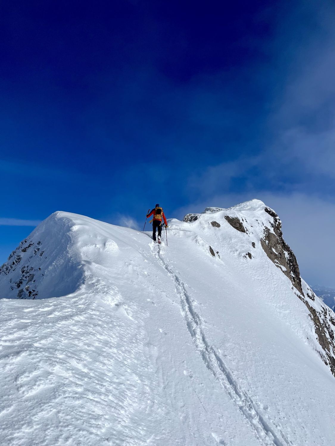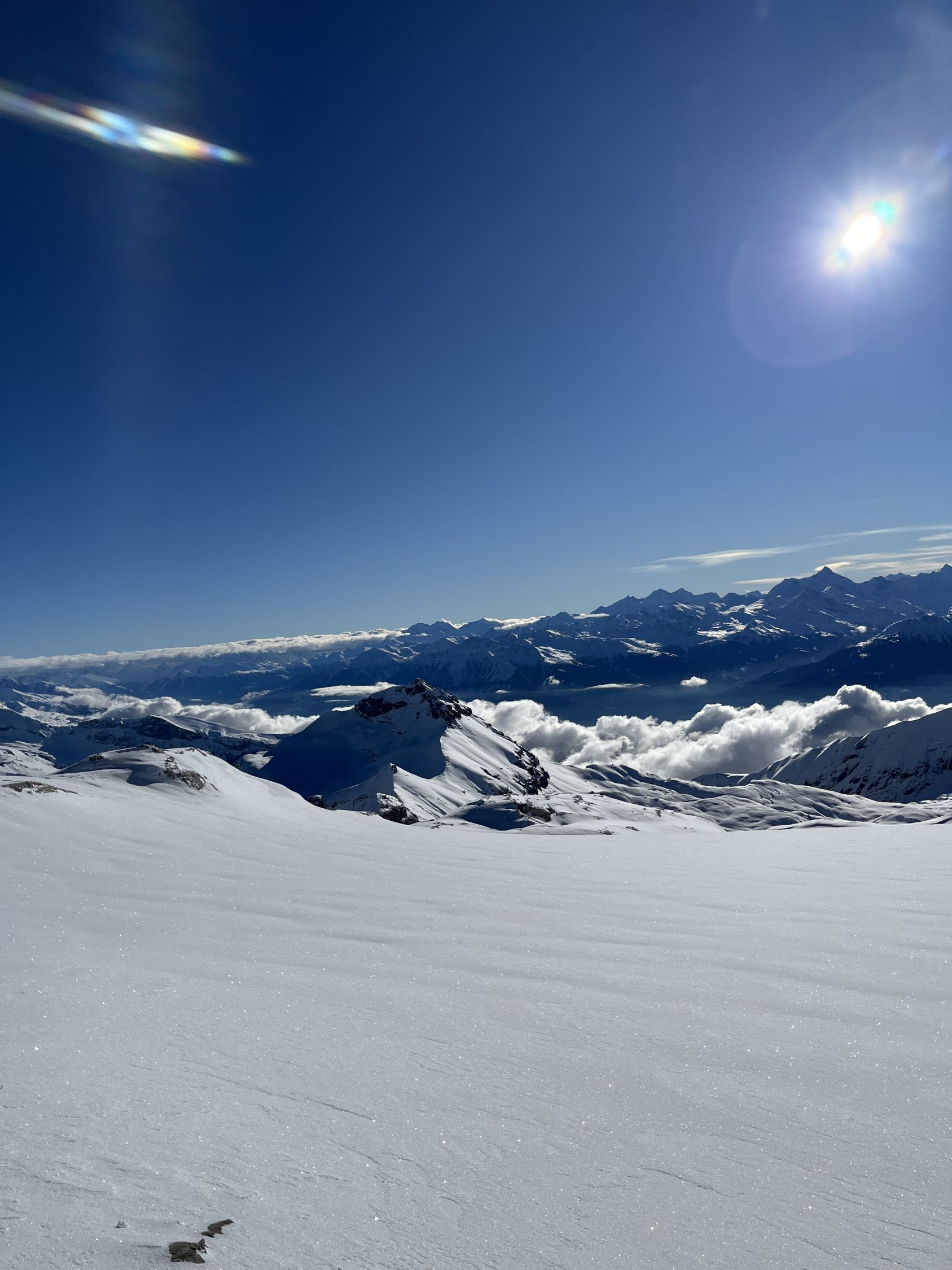 Zum Hochfahren auf Iffigenalp 4x4 Taxi anrufen +41 79 639 00 35. Um 5.30 Uhr bei -7 Grad auf Iffigenalp gestartet. Von Beginn weg 5-10 cm Neuschnee. Weiter oben hat es bis zu 40 cm Neuschnee. Wir waren ganz alleine unterwegs. Emanuel hat gute Spurarbeit geleistet. Der Übergang vom Tungelgletscher zum Wildhorn Gletscher wird jedes Jahr steiler, weil der Gletscher unten wegschmilzt. Weil die Lawinen Situation auf Erheblich war, sind wir auf dem harten Grat, mit den Skier aufgebunden direkt hochgestiegen. Aber dann kamen die Heliskiertouristen und fuhren voll in den Lawinenhang. Weil drei Helikopter ganz viele Passagiere auf dem Gipfel rausliessen, haben sie die Hänge verkarrt. Weiter haben noch zwei Flugzeuge auf dem Gletscher gelandet. Es war recht viel los da oben. Die Wildhorn Hütte ist noch bis am 21. Februar geschlossen. Die Abfahrt war traumhaft schön bei feinstem Pulverschnee von oben bis unten. Das Wetter war bombastisch.
