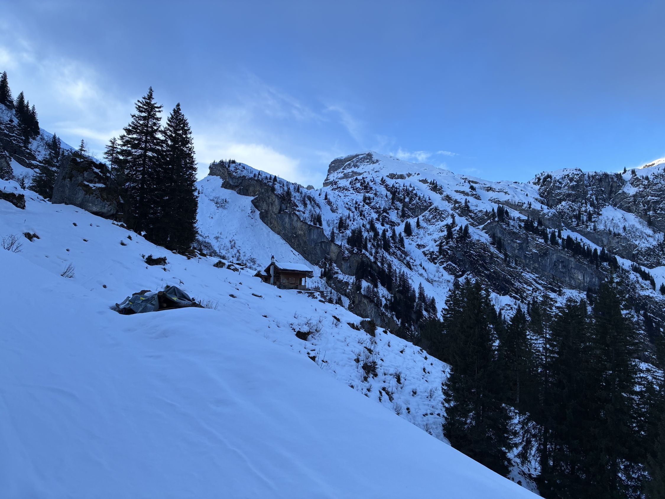 Passage auf dem Quadweg beim Drecksloch dafür null heikel und einfach! Ab 1500 aufwärts leichter Powder welcher auf 5 bis 10cm anwuchs. Es windete leicht.