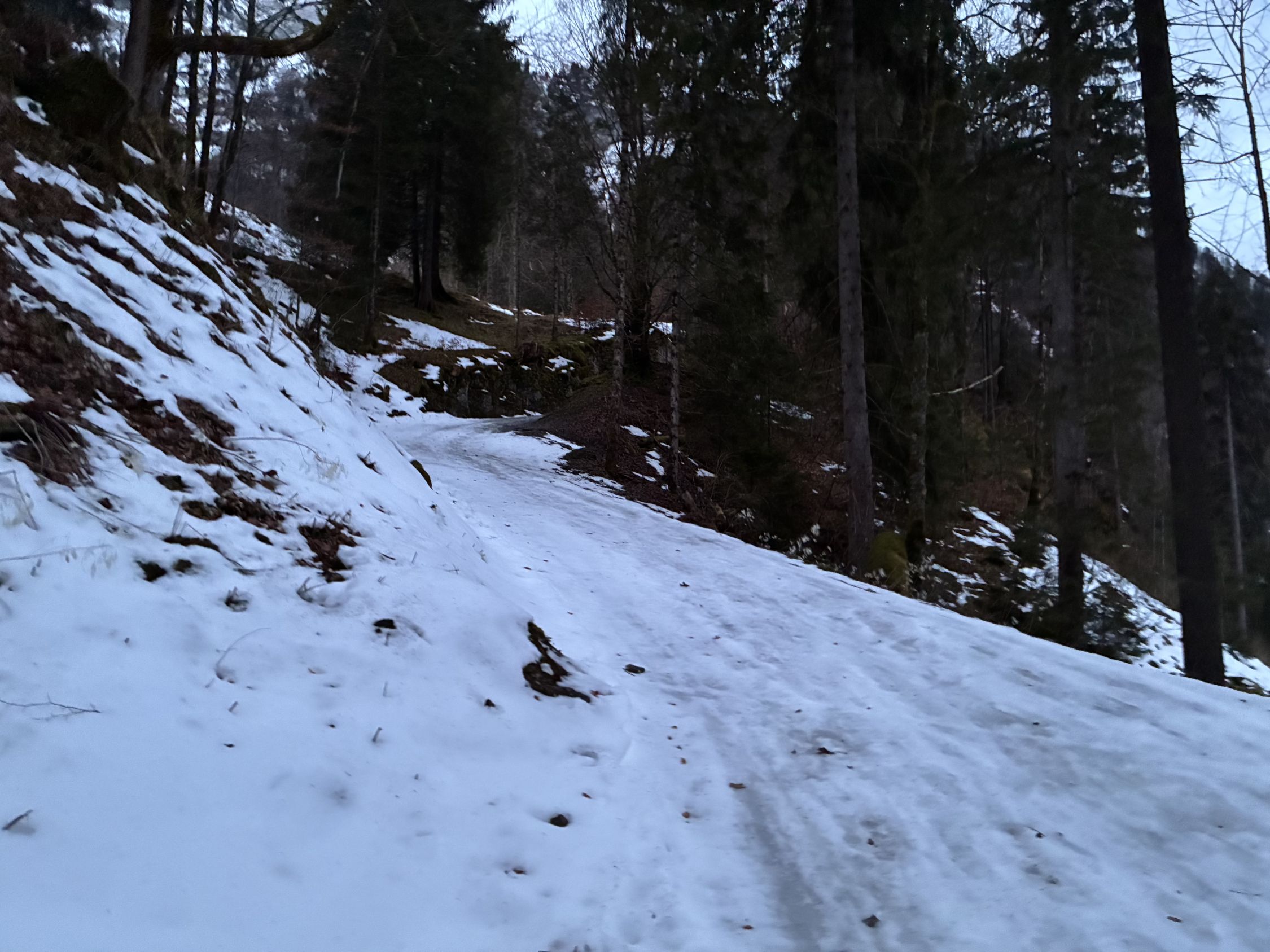 Es hat die Nacht bis auf 1500hm geregnet. Der Aufstieg ab Klöntal Plätz bzw. Durch den Wald geht noch - Abfahrt aber eher rustikal da nur noch eine dünne Eis / Harschschicht von 1 - 3 cm an einigen Stellen da ist. Morgen sicherlich Harscheisen erforderlich. Ab 1068 dann gute Grundlage, aber bis auf 1500hm hoch jetzt und im Schatten schwer fahrbare Regenharschschicht.