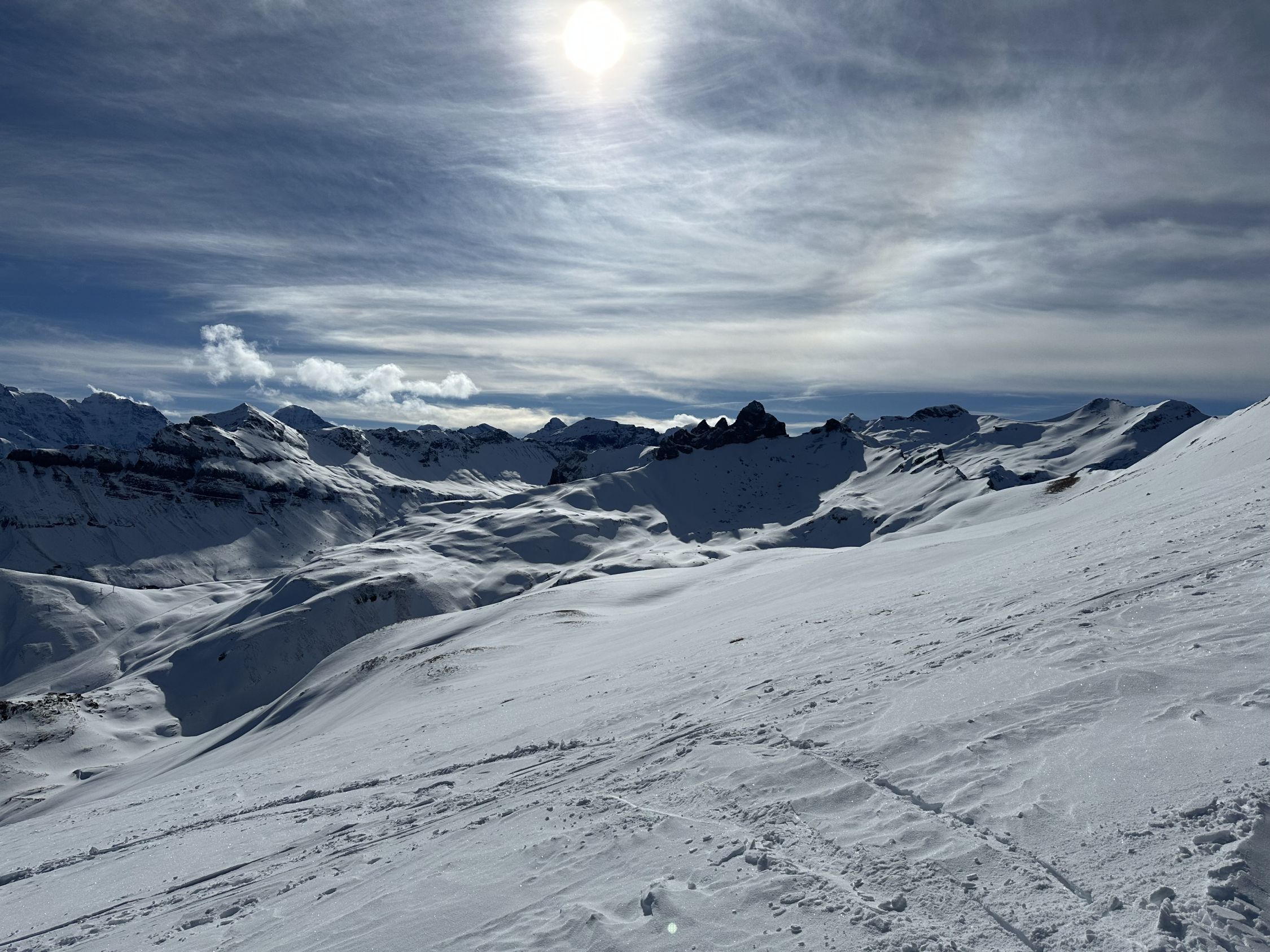 Es war heute sehr warm in der Sonne, Südseitig wurde der Schnee schwer und nass.
