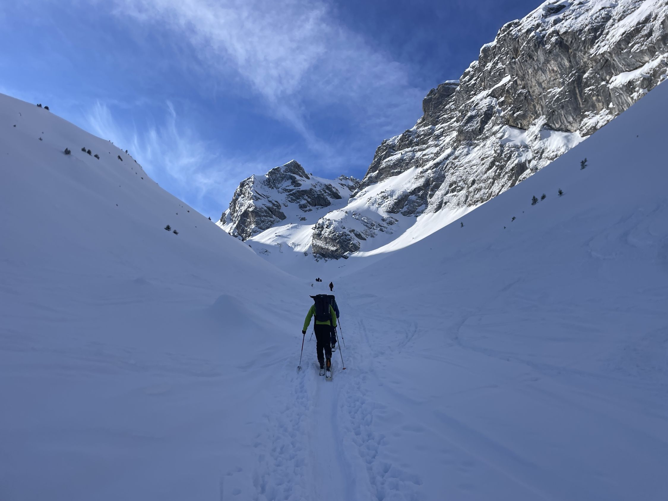 Morgen noch gut. Auch noch Platz für eigene Spuren. Danach neu beurteilen. Couloir braucht sichere Verhältnisse.