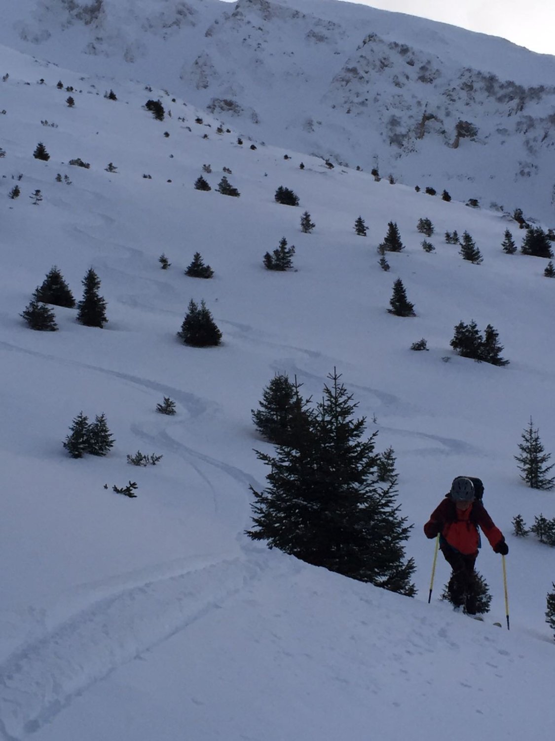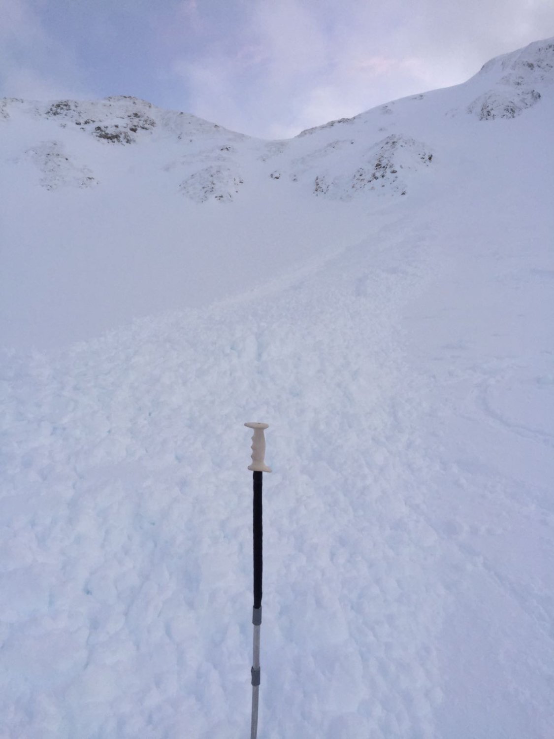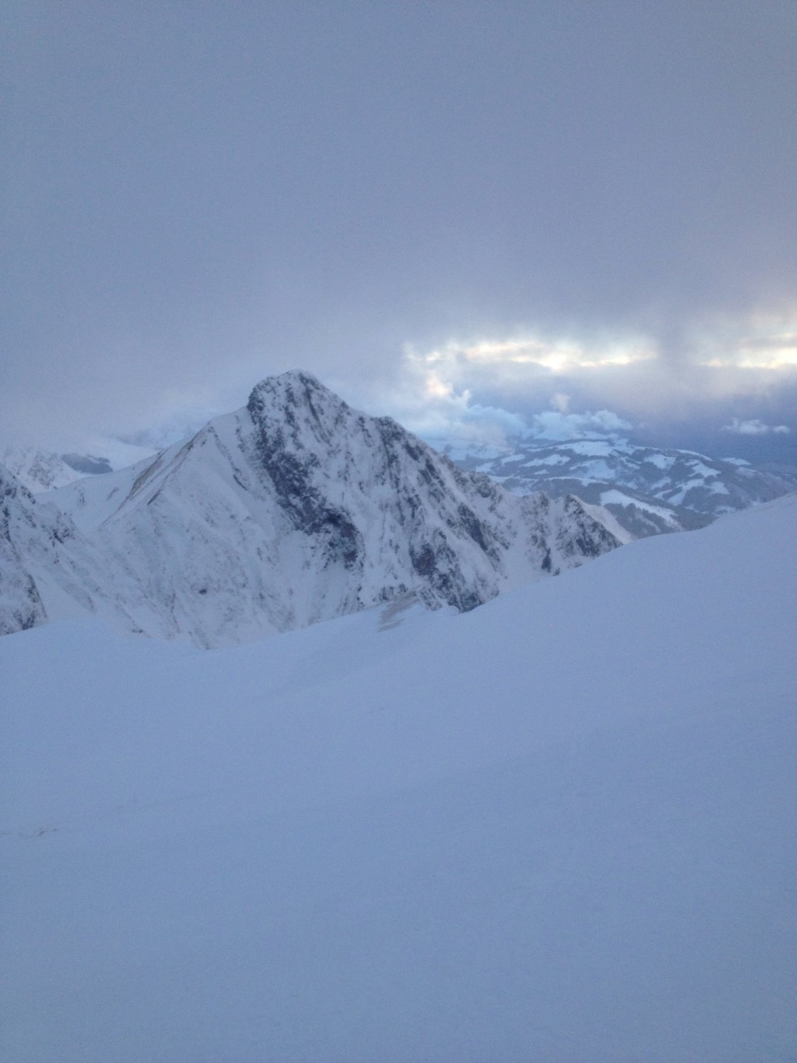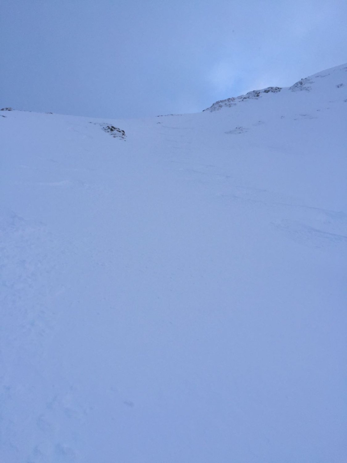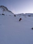 Kleiner spontaner Lockerschneerutsch in der unteren Hälfte der Nordflanke.