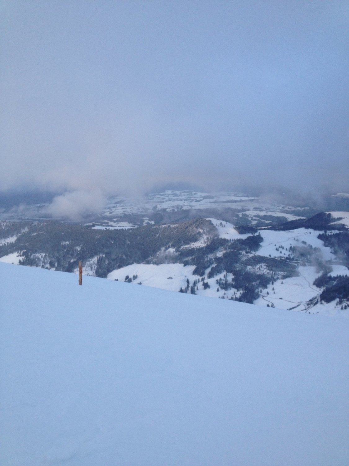 Wir waren ganz alleine im Gantrischgebiet unterwegs, schon lange nicht mehr erlebt. Der Fahrer der Schneefräse vom Staat hat einen Teil des Parkplatz's geräumt, weil er auch die Meldung ans SLF jeweils macht. Der Bund sei sonst zuständig und der macht ja bekanntlich nichts, trotz unseren Steuergeldern...Also geben wir doch den Leuten vom Staat ab und zu ein Trinkgeld...